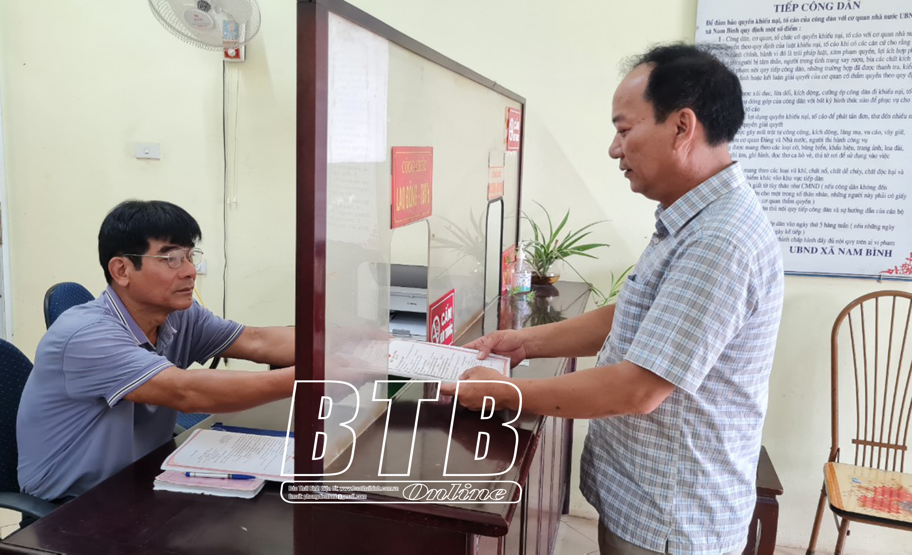 Cán bộ xã Nam Bình tiếp và giải quyết hồ sơ cho công dân.