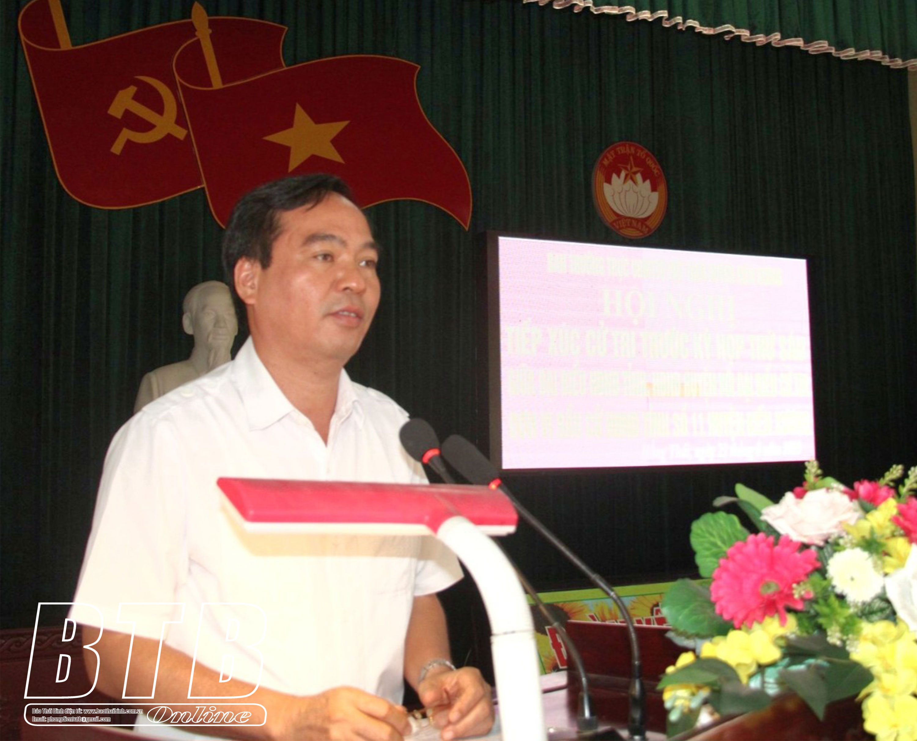 Đồng chí cũng giải trình, làm rõ một số ý kiến, kiến nghị của cử tri; đề nghị huyện Kiến Xương xem xét, giải quyết kịp thời các ý kiến, kiến nghị thuộc thẩm quyền; đồng thời tiếp thu ý kiến, kiến nghị của cử tri, tổng hợp gửi kỳ họp HĐND tỉnh, HĐND huyện tới.