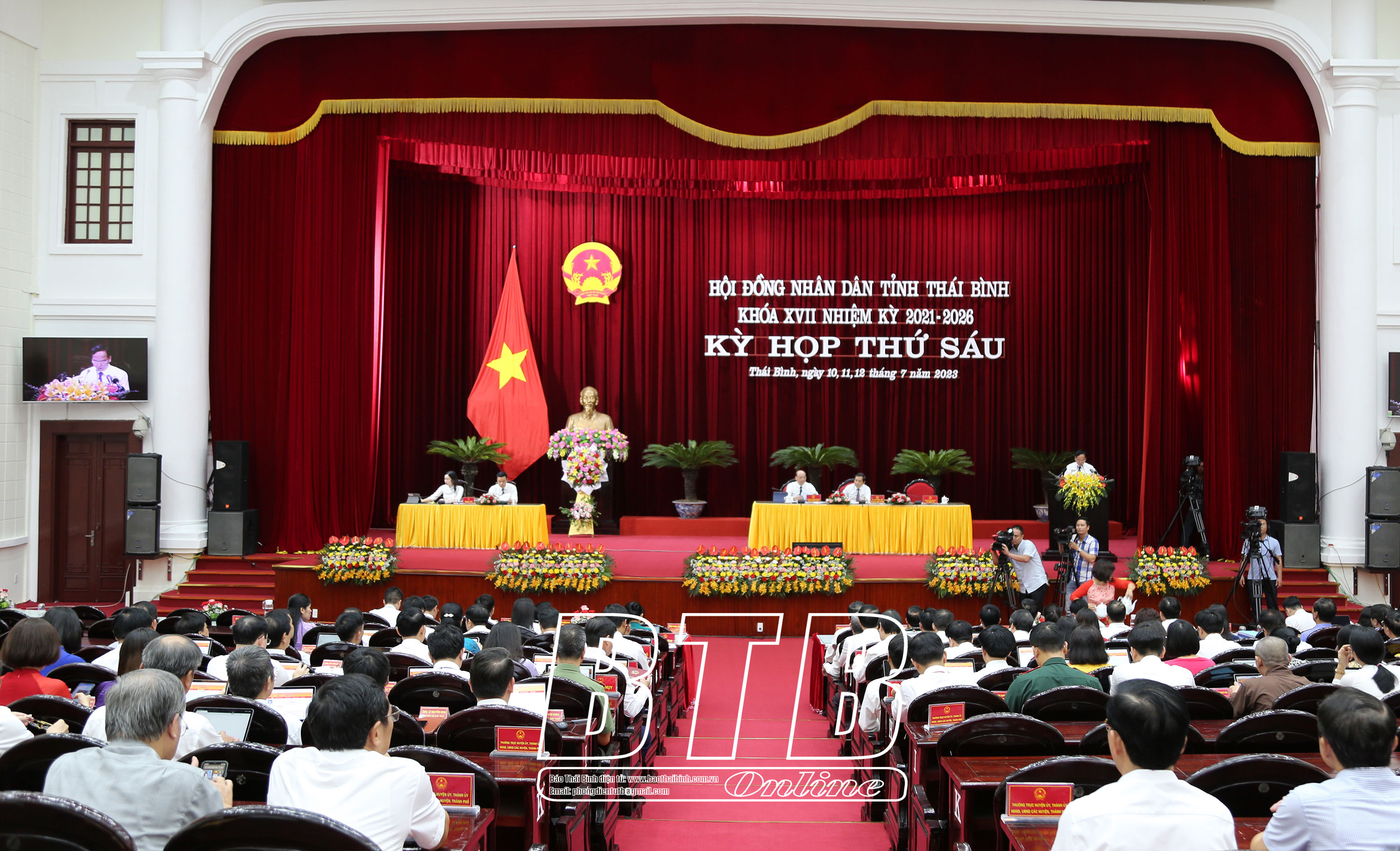 Đồng chí Phạm Hồng Tùng, Giám đốc Sở Tài chính báo cáo tình hình thực hiện thu, chi ngân sách nhà nước 6 tháng đầu năm và dự kiến thực hiện thu, chi ngân sách năm 2023. Đồng chí báo cáo các tờ trình của UBND tỉnh về việc: Ban hành Nghị quyết quy định mức thu lệ phí đối với các tổ chức, cá nhân thực hiện thủ tục hành chính qua dịch vụ công trực tuyến một phần hoặc toàn trình trên địa bàn tỉnh Thái Bình; ban hành Nghị quyết quy định mức chi cho công tác kiểm tra, xử lý, rà soát, hệ thống hóa văn bản quy phạm pháp luật trên địa bàn tỉnh Thái Bình; ban hành Nghị quyết quy định mức thu, đơn vị tính và tỷ lệ điều tiết phí bảo vệ môi trường đối với khai thác khoáng sản trên địa bàn tỉnh Thái Bình; ban hành Nghị quyết sửa đổi điểm 1.2 mục IV Phụ lục 1 ban hành kèm theo Nghị quyết số 50/2016/NQ-HĐND ngày 13/12/2016 của HĐND tỉnh ban hành quy định mức thu, chế độ thu, nộp, quản lý và sử dụng phí, lệ phí theo Luật Phí và lệ phí năm 2015 thuộc thẩm quyền của HĐND tỉnh trên địa bàn tỉnh Thái Bình và bãi bỏ Nghị quyết số 06/2017/NQ-HĐND ngày 14/7/2017 của HĐND tỉnh quy định mức thu, nộp, quản lý và sử dụng phí thẩm định đề án bảo vệ môi trường chi tiết trên địa bàn tỉnh Thái Bình.
