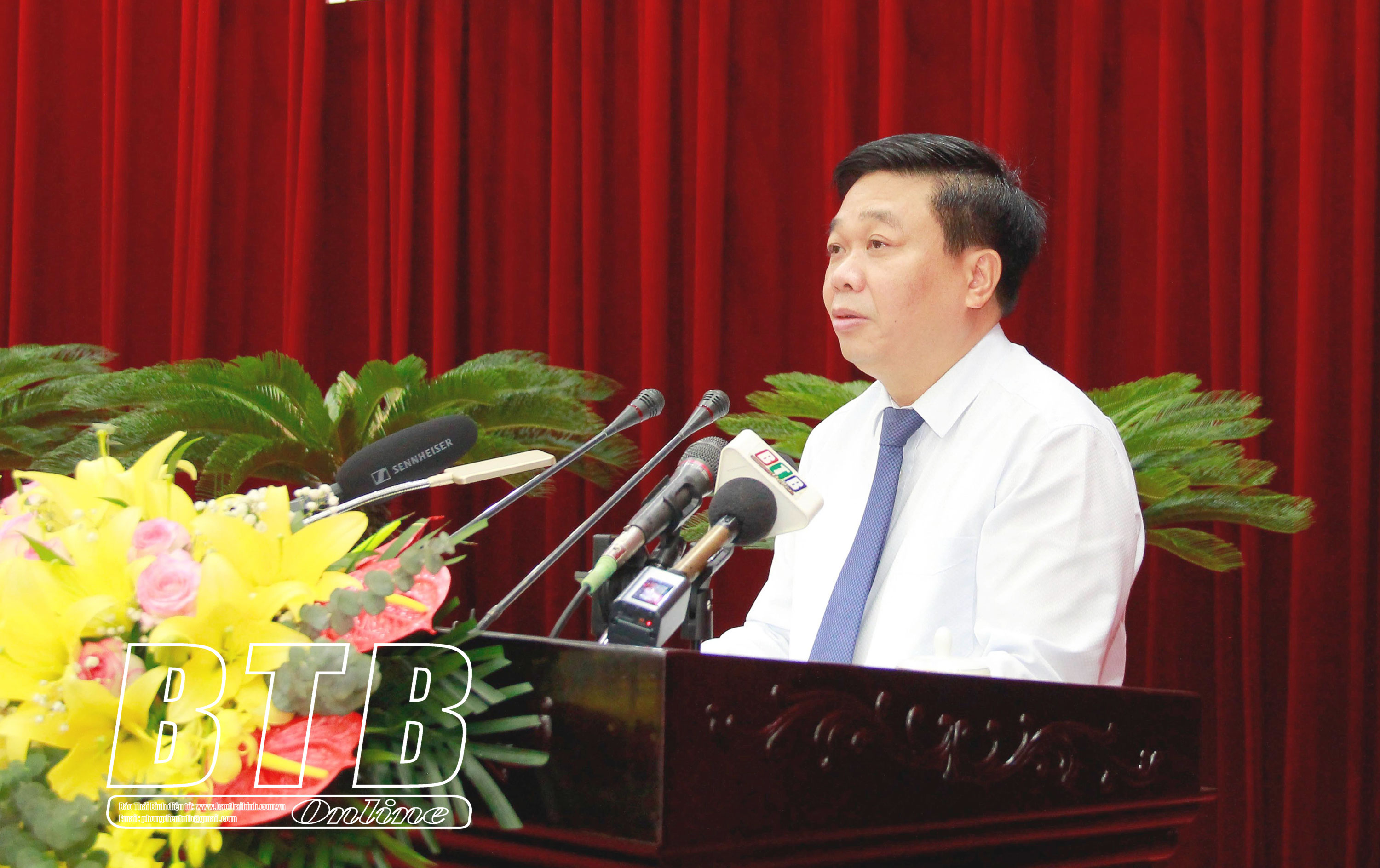 Để đưa Thái Bình tiếp tục phát triển toàn diện và bền vững, đồng chí đề nghị Tỉnh ủy, HĐND, UBND tỉnh tập trung lãnh đạo, chỉ đạo tiếp tục quán triệt sâu sắc và cụ thể hóa, tổ chức tốt Nghị quyết Đại hội XIII của Đảng, các nghị quyết của Trung ương, Nghị quyết kỳ họp thứ 5 Quốc hội khóa XV, Nghị quyết Đại hội Đảng bộ tỉnh Thái Bình lần thứ XX, nhiệm kỳ 2020-2025, tạo sự thống nhất đồng bộ trong nhận thức và hành động của cả hệ thống chính trị nói chung và HĐND nói riêng và lan tỏa tới các tầng lớp nhân dân để triển khai thực hiện các mục tiêu, nhiệm vụ và các nhóm giải pháp mà Nghị quyết Đại hội Đảng bộ tỉnh, Nghị quyết HĐND tỉnh đã đề ra. Thực hiện có hiệu quả hơn nữa công tác cải cách hành chính. Tiếp tục nêu cao trách nhiệm, kỷ luật, kỷ cương công vụ của đội ngũ cán bộ, công chức các cấp, các ngành, nhất là trách nhiệm của người đứng đầu. Rà soát, điều chỉnh và bổ sung kịp thời cơ chế, chính sách theo hướng công khai, minh bạch, thông thoáng, tạo thuận lợi cho người dân và doanh nghiệp; cải thiện môi trường đầu tư, nâng cao năng lực cạnh tranh để thu hút được các dự án đầu tư nước ngoài có quy mô lớn, hàm lượng công nghệ cao... Nắm chắc tình hình ở cơ sở, làm tốt công tác tuyên truyền, phổ biến, giáo dục pháp luật, tăng cường công tác vận động quần chúng, để tạo sự đồng thuận, phát huy sức mạnh của nhân dân trong xây dựng và phát triển tỉnh. Giữ vững quốc phòng, an ninh, trật tự an toàn xã hội.