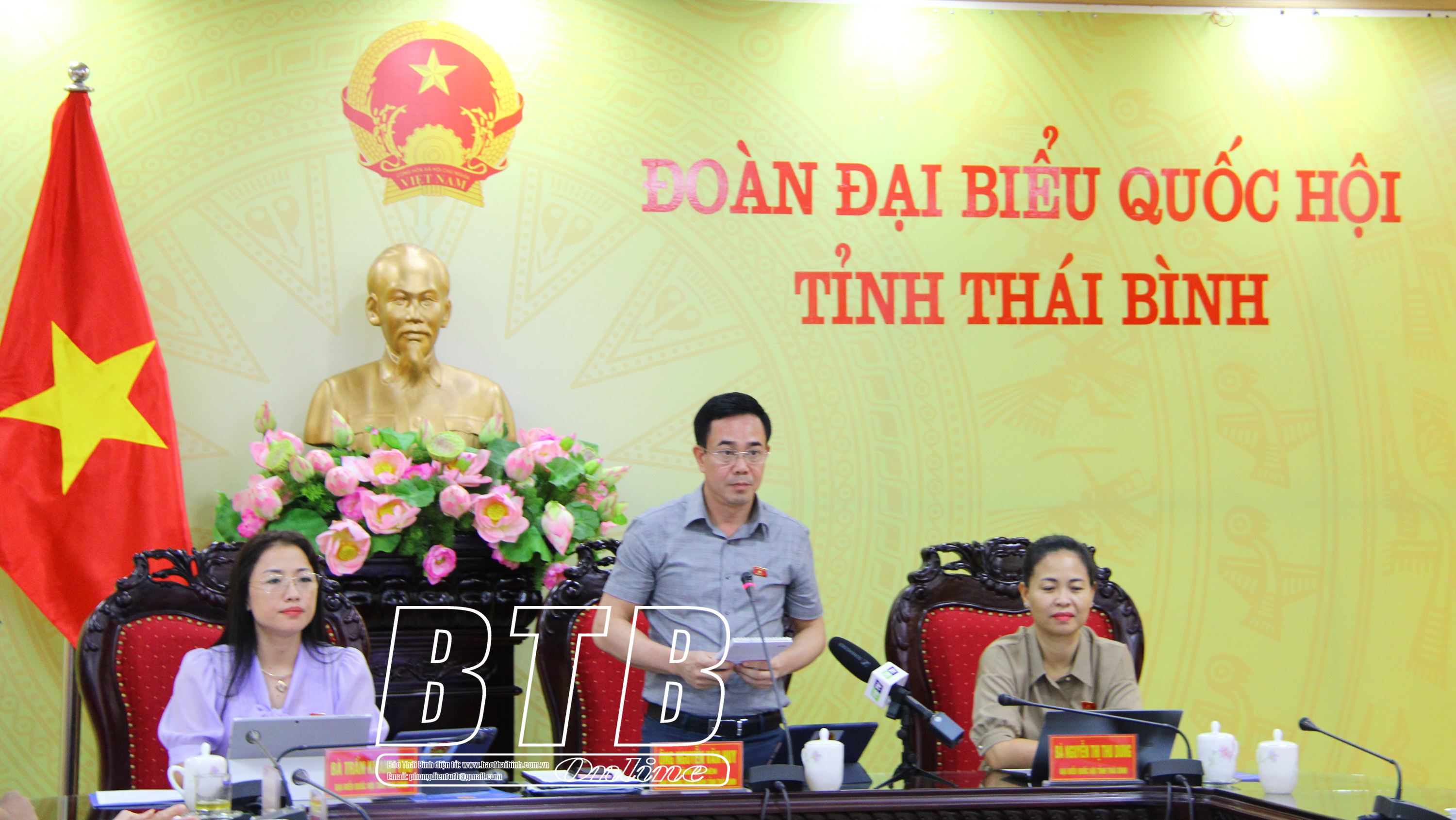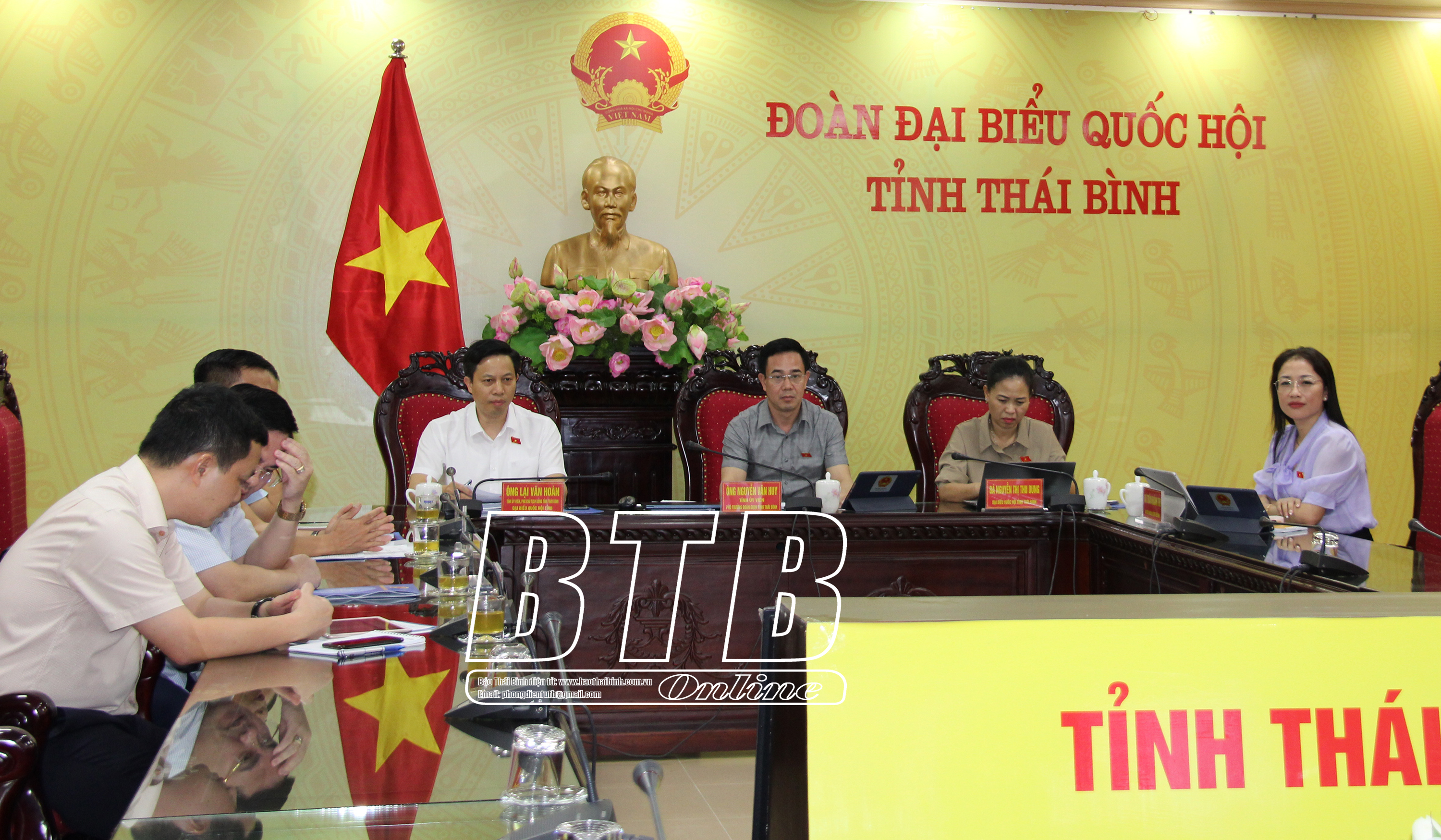Dự tại điểm cầu Thái Bình có các đồng chí: Ngô Đông Hải, Ủy viên Ban Chấp hành Trung ương Đảng, Bí thư Tỉnh ủy; Nguyễn Văn Huy, Tỉnh ủy viên, Phó Trưởng đoàn đại biểu Quốc hội chuyên trách tỉnh; Lại Văn Hoàn, Tỉnh ủy viên, Phó Chủ tịch UBND tỉnh, các đại biểu Quốc hội tỉnh; đại diện lãnh đạo một số sở, ngành của tỉnh.