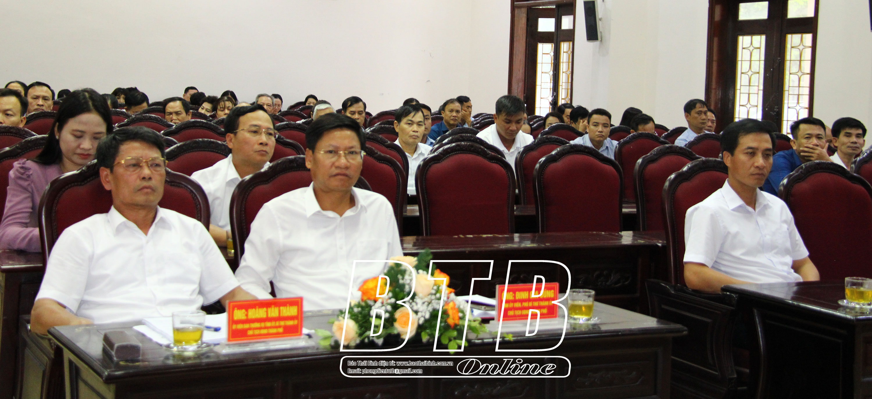 Dự hội nghị có các đồng chí: Nguyễn Văn An, Ủy viên thường trực Ủy ban Khoa học, Công nghệ và Môi trường của Quốc hội; Hoàng Văn Thành, Ủy viên Ban Thường vụ Tỉnh ủy, Bí thư Thành ủy, Chủ tịch HĐND thành phố; Nguyễn Thị Thu Dung, Hiệu trưởng Trường Cao đẳng Y tế Thái Bình.