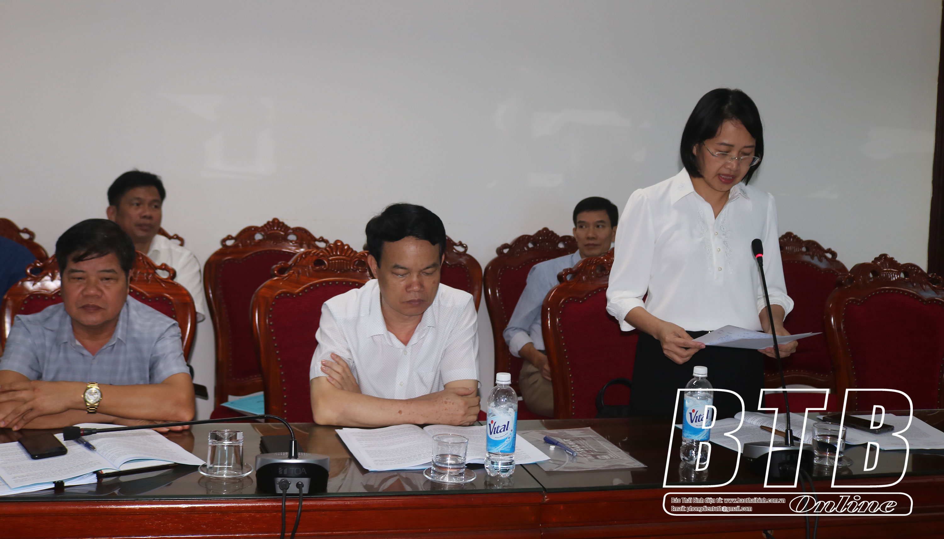 Lãnh đạo Ban Văn hóa xã hội, HĐND tỉnh phát biểu tại buổi giám sát tại UBND huyện Tiền Hải.