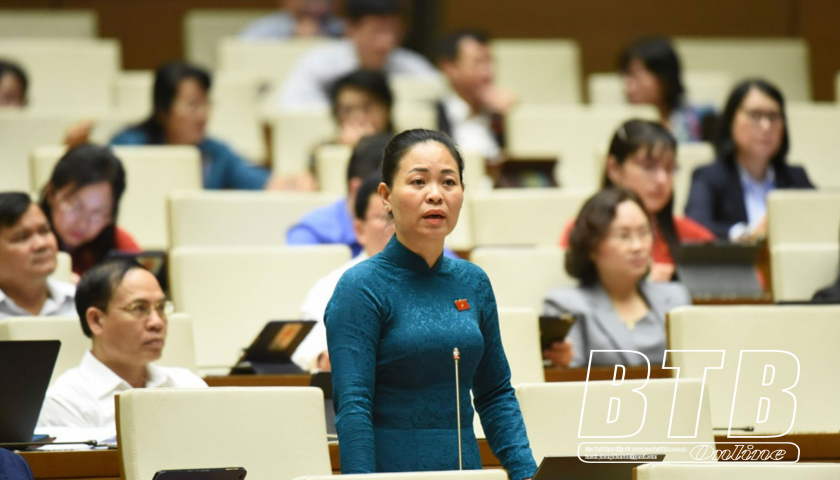 Đại biểu Nguyễn Thị Thu Dung, Đoàn đại biểu Quốc hội tỉnh phát biểu thảo luận.