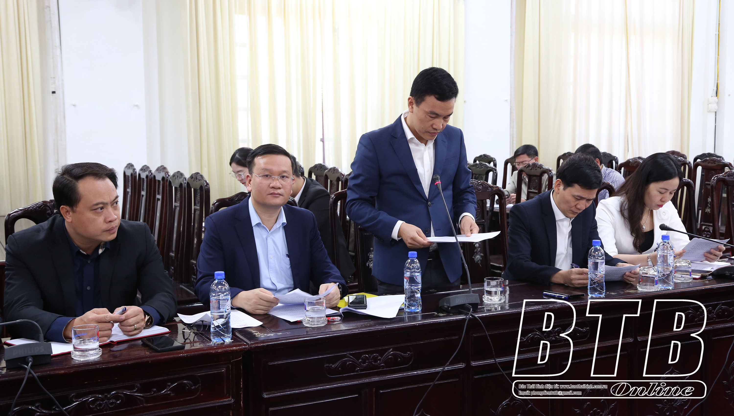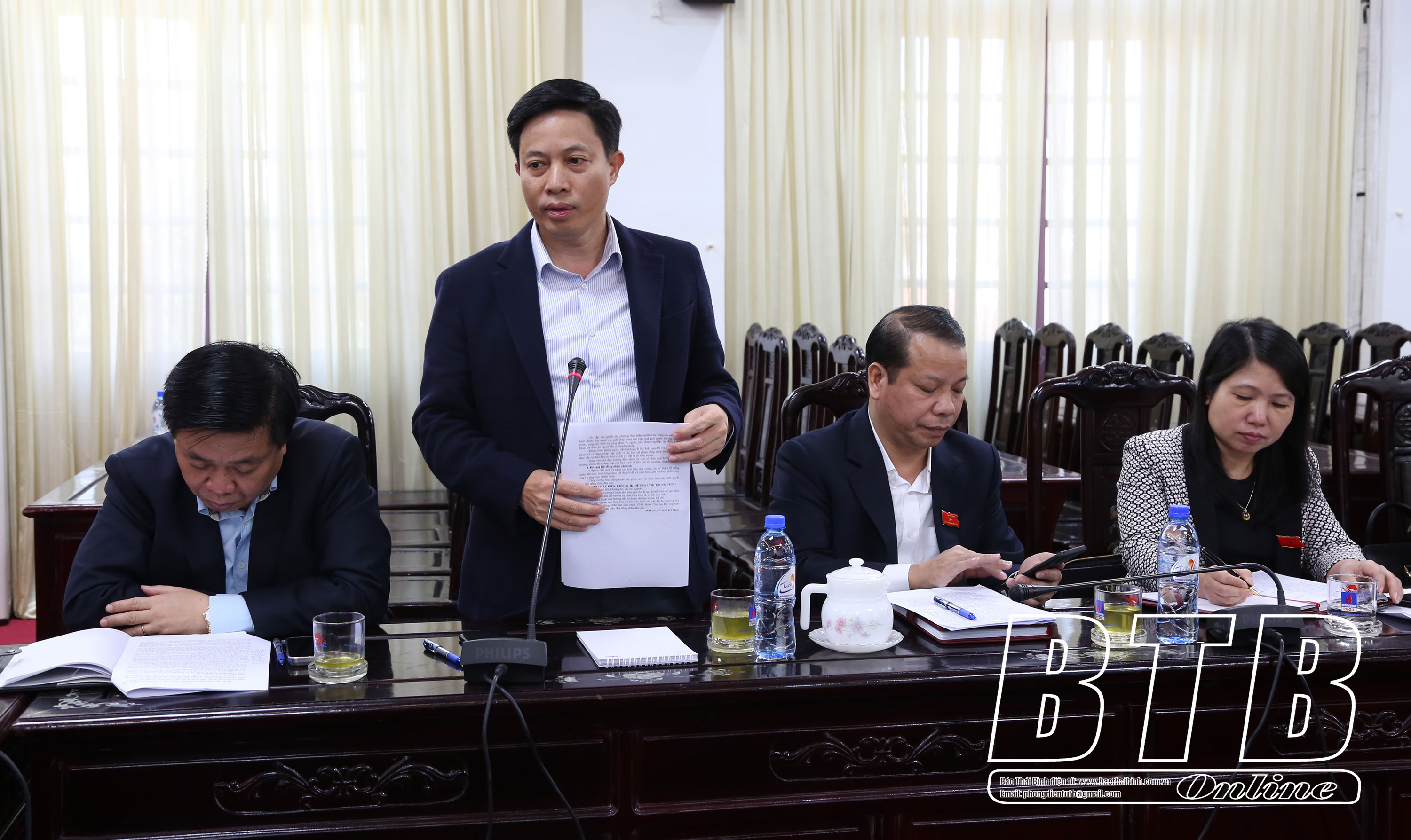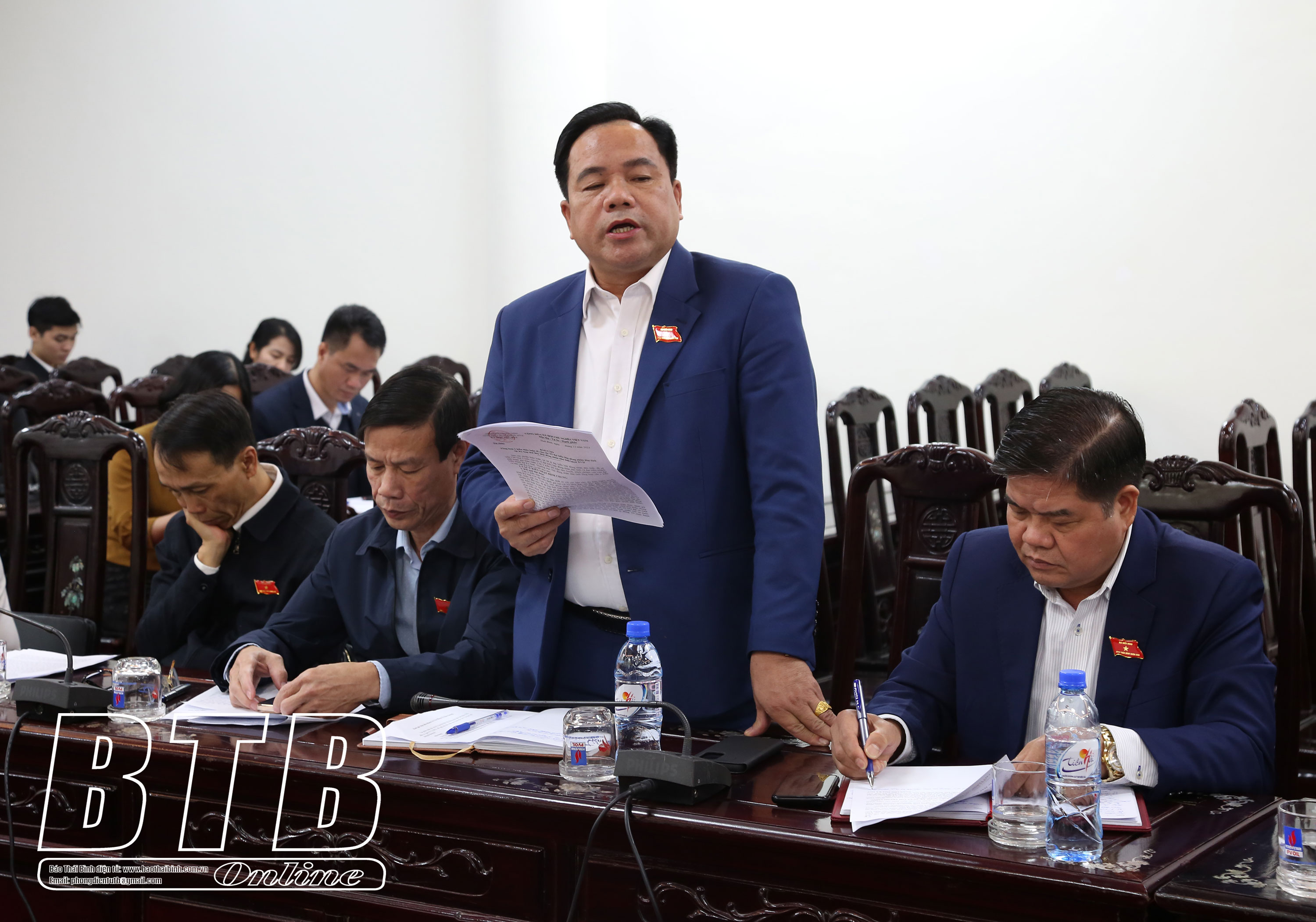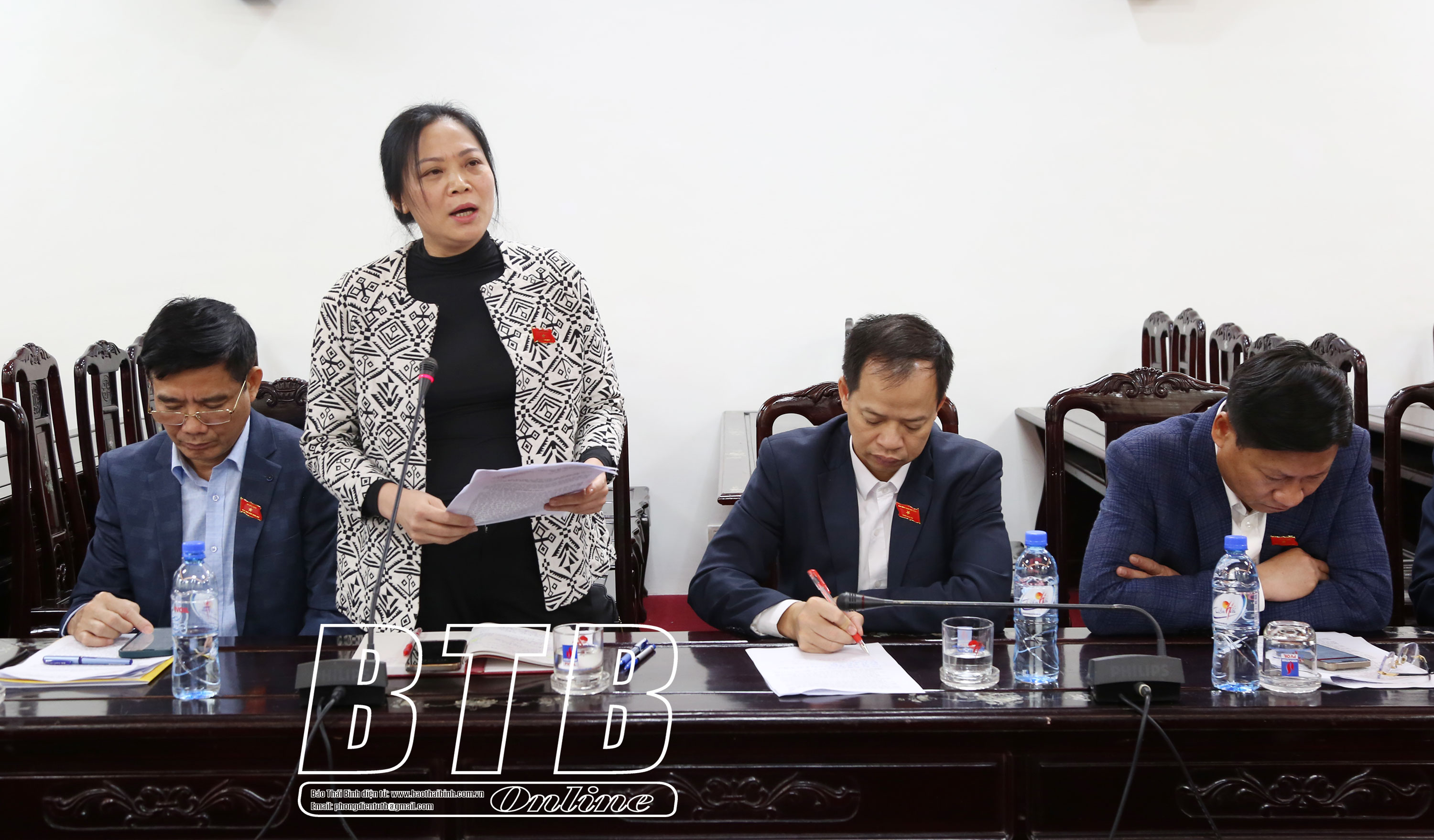 Đại biểu tổ huyện Kiến Xương phát biểu tại cuộc họp.