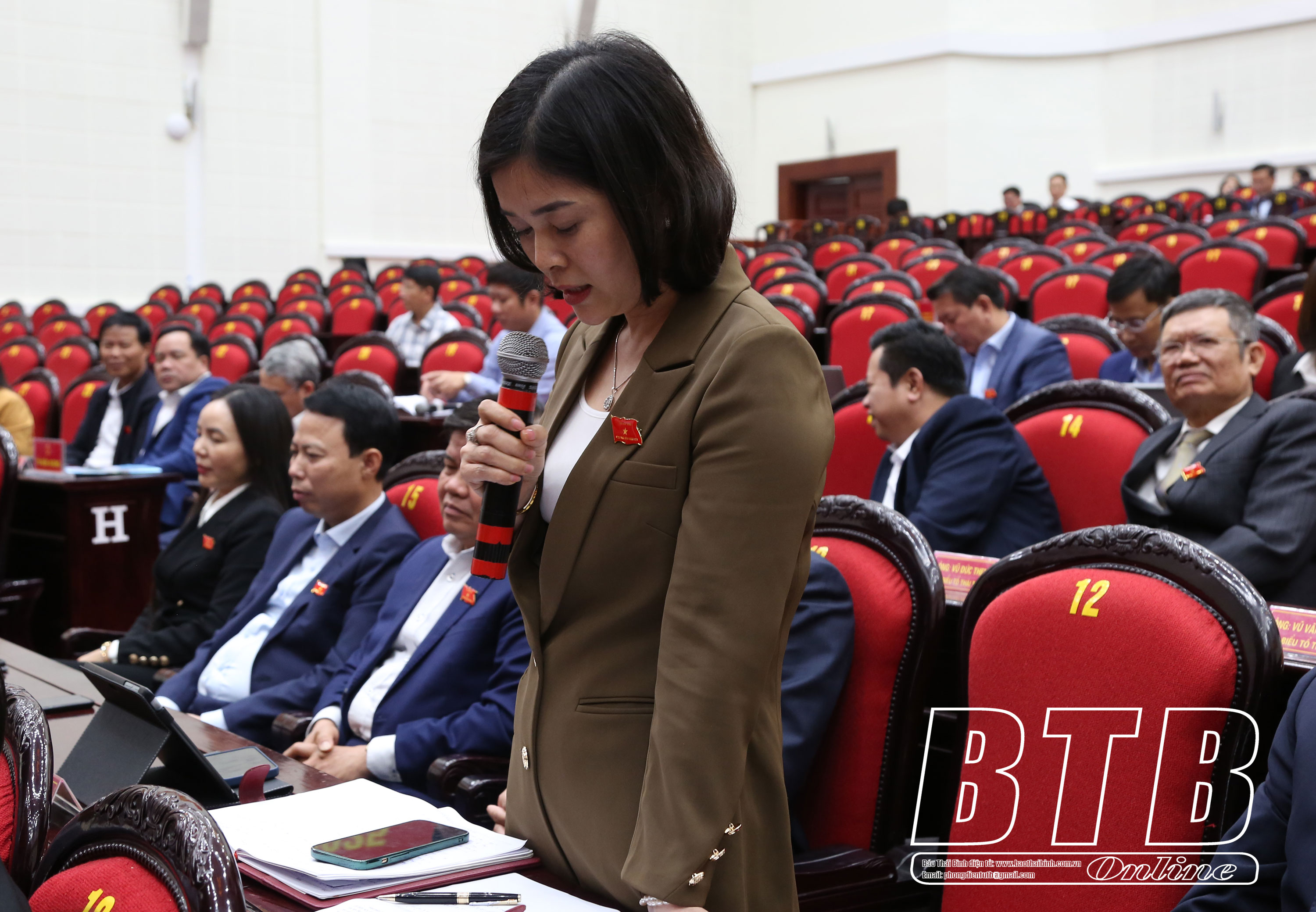 Đại biểu Nguyễn Thị Xuyến (Tổ Tiền Hải) chất vấn đồng chí Phan Đình Dực, Phó Trưởng ban, phụ trách Ban Quản lý Khu kinh tế và các khu công nghiệp tỉnh nội dung: Theo phản ánh của cử tri và qua quan sát trực quan chúng tôi thấy trong thời gian gần đây tại khu công nghiệp huyện Tiền Hải có nhiều ống khói của các nhà máy, xí nghiệp xả thải, khói, bụi ra môi trường làm ảnh hưởng xấu tới môi trường của các xã gần khu công nghiệp. Đề nghị Ban Quản lý Khu kinh tế và các khu công nghiệp tỉnh cho biết nguyên nhân và giải pháp khắc phục.