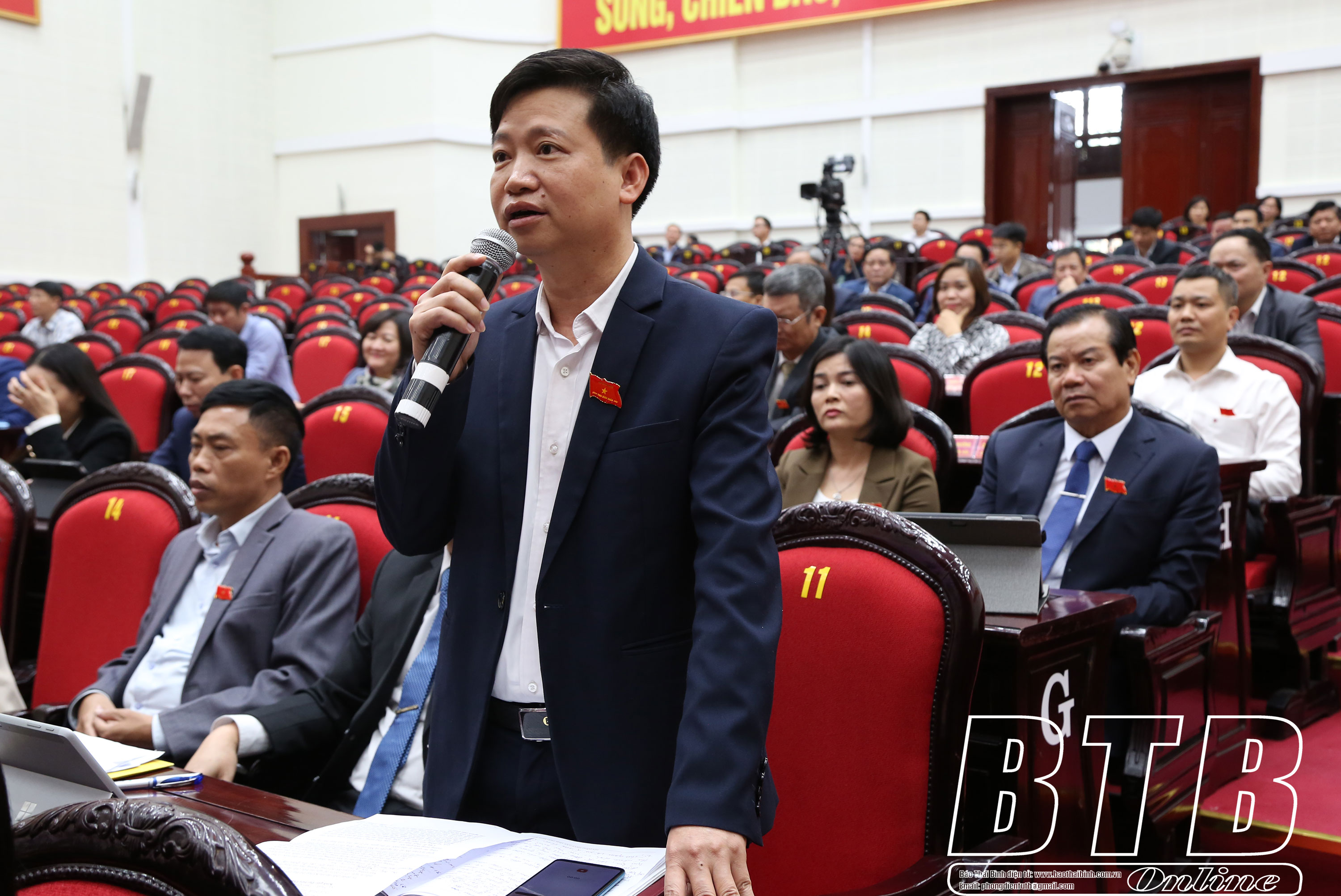 Đại biểu Lê Văn Khoa (Tổ Thái Thụy) chất vấn tại kỳ họp.