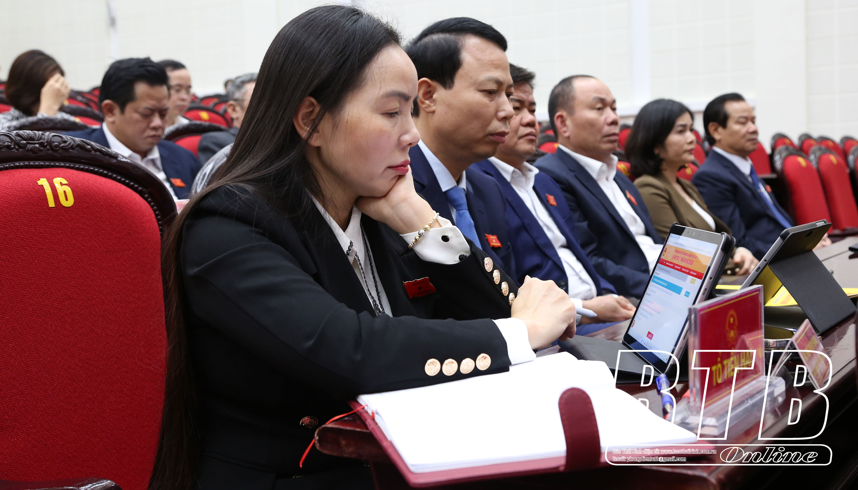 Mở đầu phiên họp, HĐND tỉnh nghe báo cáo tổng hợp ý kiến tại 2 phiên thảo luận tổ chiều ngày 5/12 và sáng ngày 7/12. Tiếp đó, các đại biểu và lãnh đạo các sở, ngành, địa phương phát biểu thảo luận tại hội trường. Đồng chí Vũ Thanh Vân, Ủy viên Ban Thường vụ Tỉnh ủy, Chủ tịch MTTQ tỉnh tham luận nội dung MTTQ tham gia xây dựng chính quyền. Đại biểu Thái Thị Thu Hường, Bí thư Huyện ủy Thái Thụy (Tổ Thái Thụy) tham luận nội dung đánh giá, nhận định về kết quả kinh tế - xã hội năm 2023 của tỉnh, nhiệm vụ, giải pháp trọng tâm năm 2024. Đại biểu Nguyễn Xuân Khánh, Bí thư Huyện ủy Tiền Hải (Tổ Tiền Hải) tham luận nội dung một số giải pháp phát triển kinh tế biển bền vững trong thời gian tới. Đại biểu Bùi Văn Sơn, Chủ tịch Hội đồng quản trị Công ty Cổ phần Gốm sứ Long Hầu (Tổ Tiền Hải) tham luận nội dung thực trạng thuận lợi, khó khăn của các doanh nghiệp hiện nay, những kiến nghị, đề xuất UBND tỉnh, các sở, ngành tạo điều kiện hỗ trợ các doanh nghiệp tháo gỡ khó khăn để duy trì và mở rộng phát triển sản xuất trong thời gian tới. Đại biểu Đinh Gia Dũng, Chủ tịch UBND thành phố Thái Bình (Tổ trưởng Tổ đại biểu thành phố) tham luận về nội dung giải pháp đẩy nhanh tiến độ thực hiện đề án di chuyển các cơ sở sản xuất, kinh doanh, trụ sở cơ quan, đơn vị và một số điểm dân cư khu vực ven sông Trà Lý thuộc địa bàn thành phố Thái Bình để phát triển đô thị. Đại biểu Phạm Thị Như Phong, Chủ tịch UBND huyện Vũ Thư (Tổ trưởng Tổ đại biểu huyện Vũ Thư) tham luận nội dung phát triển du lịch gắn với nông nghiệp, thương mại dịch vụ đến năm 2025, định hướng đến 2030, từng bước đưa du lịch thành ngành kinh tế quan trọng của tỉnh. Đồng chí Lại Hợp Mạnh, Viện trưởng Viện Kiểm sát nhân dân tỉnh tham luận nội dung tình hình vi phạm, tội phạm năm 2023 và kết quả công tác thực hành quyền công tố, kiểm sát điều tra và kiểm sát xét xử án hình sự.