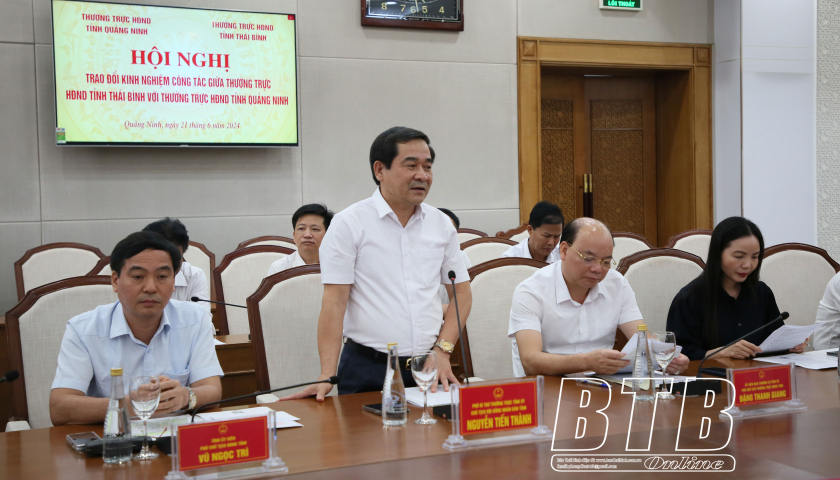 Đồng chí Nguyễn Tiến Thành, Phó Bí thư thường trực Tỉnh ủy, Chủ tịch HĐND tỉnh Thái Bình khẳng định: Những kết quả nổi bật, toàn diện trong phát triển kinh tế - xã hội của tỉnh Quảng Ninh trong thời gian qua là minh chứng rõ nét nhất, khẳng định hiệu quả hoạt động của HĐND tỉnh Quảng Ninh. Những cách làm mới, sáng tạo, chủ động của Thường trực HĐND tỉnh Quảng Ninh chắc chắn sẽ là bài học, kinh nghiệm rất quý đối với Thường trực HĐND tỉnh Thái Bình.