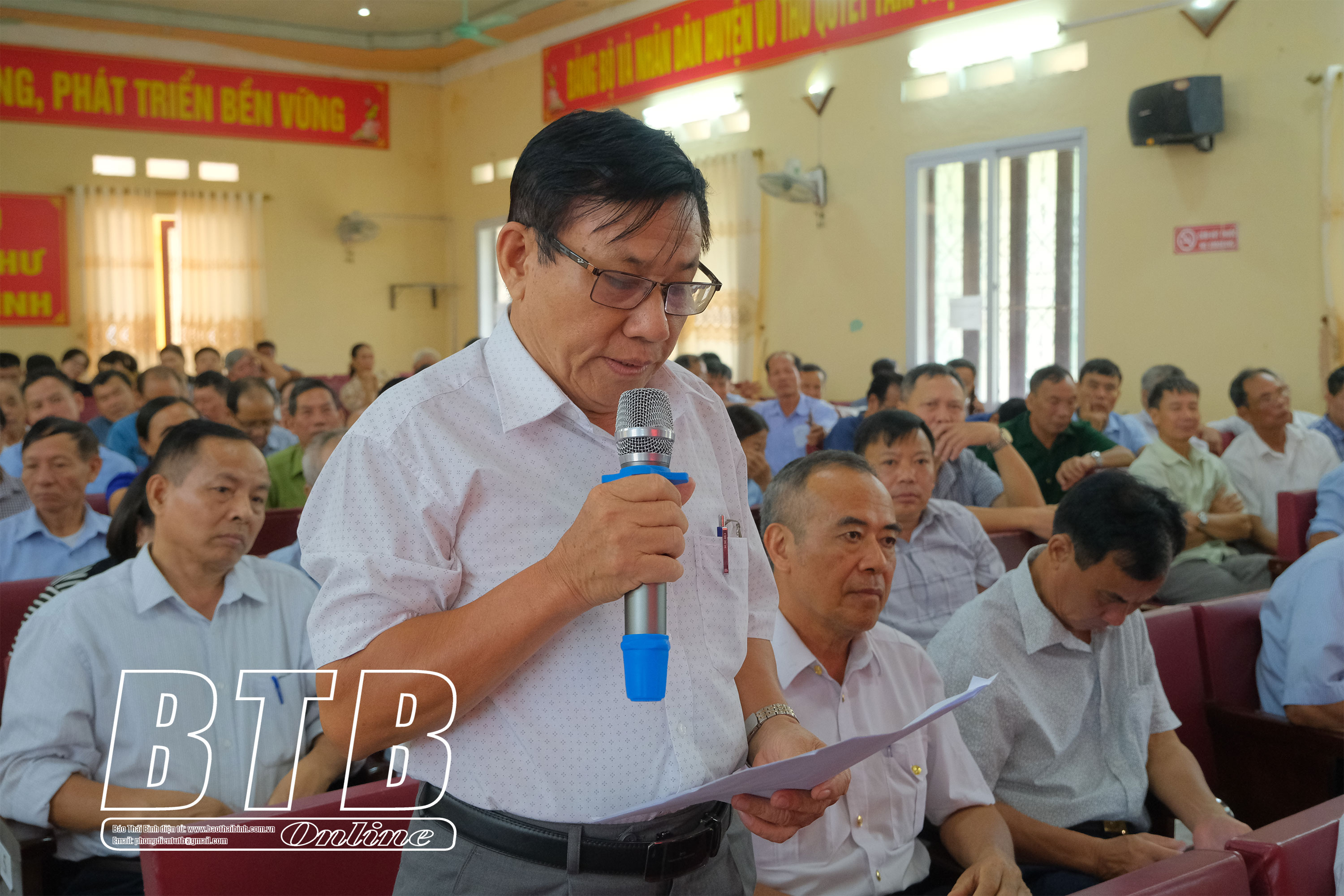 Cử tri huyện Vũ Thư phát biểu tại hội nghị. Ảnh: Phương Triệu