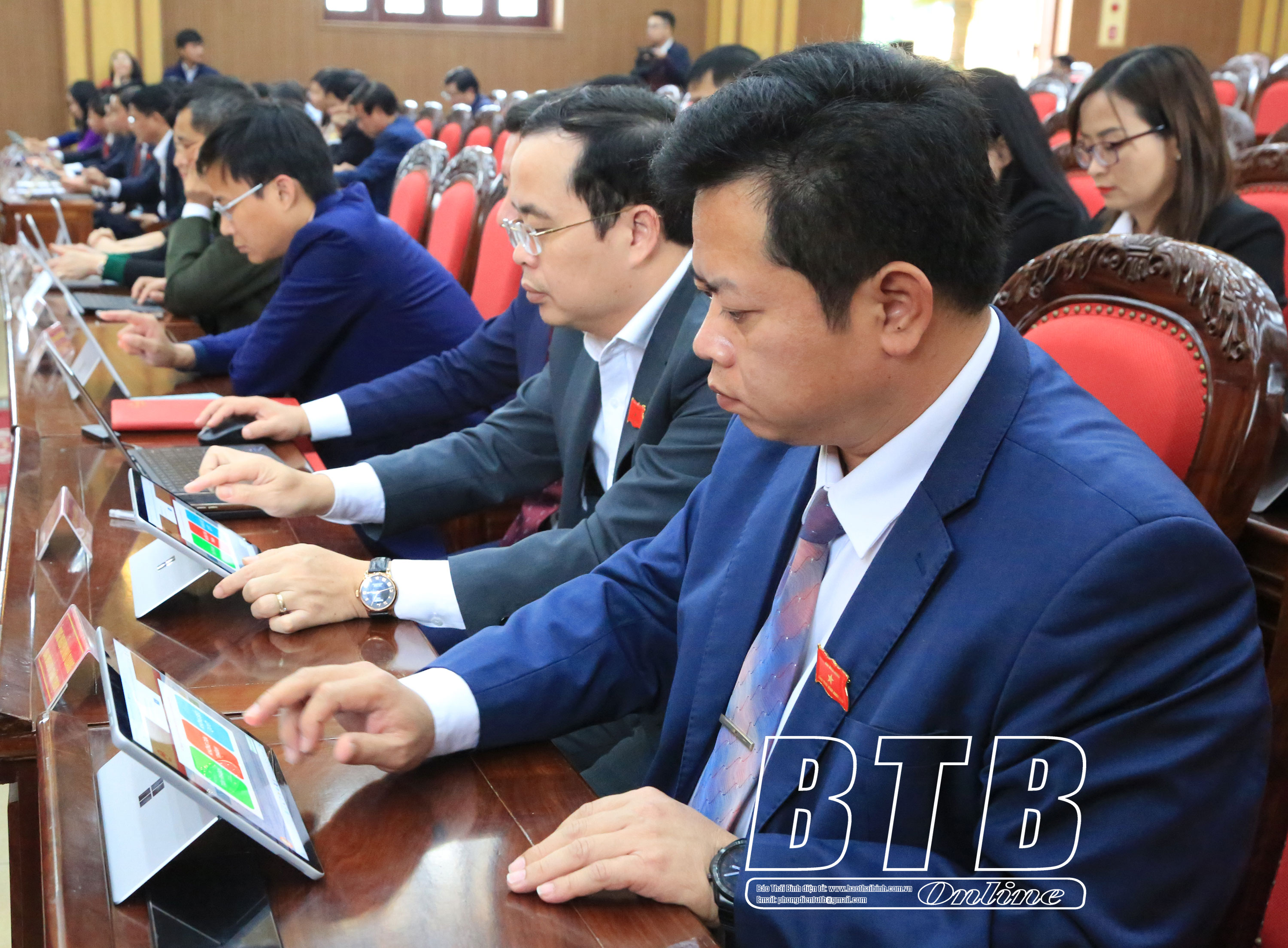 Các đại biểu HĐND tỉnh sử dụng phần mềm “Kỳ họp không giấy tờ” nghiên cứu tài liệu để thảo luận, quyết định các vấn đề tại kỳ họp.