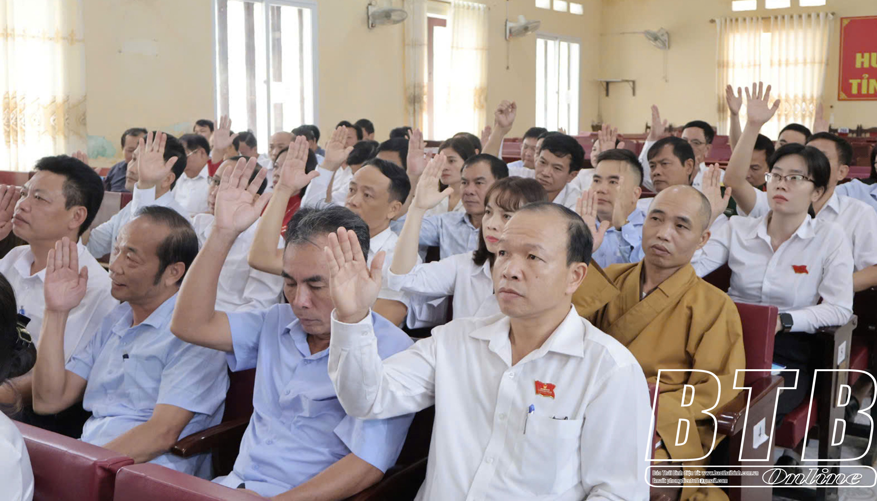 Các đại biểu HĐND huyện Vũ Thư biểu quyết thông qua các tờ trình.