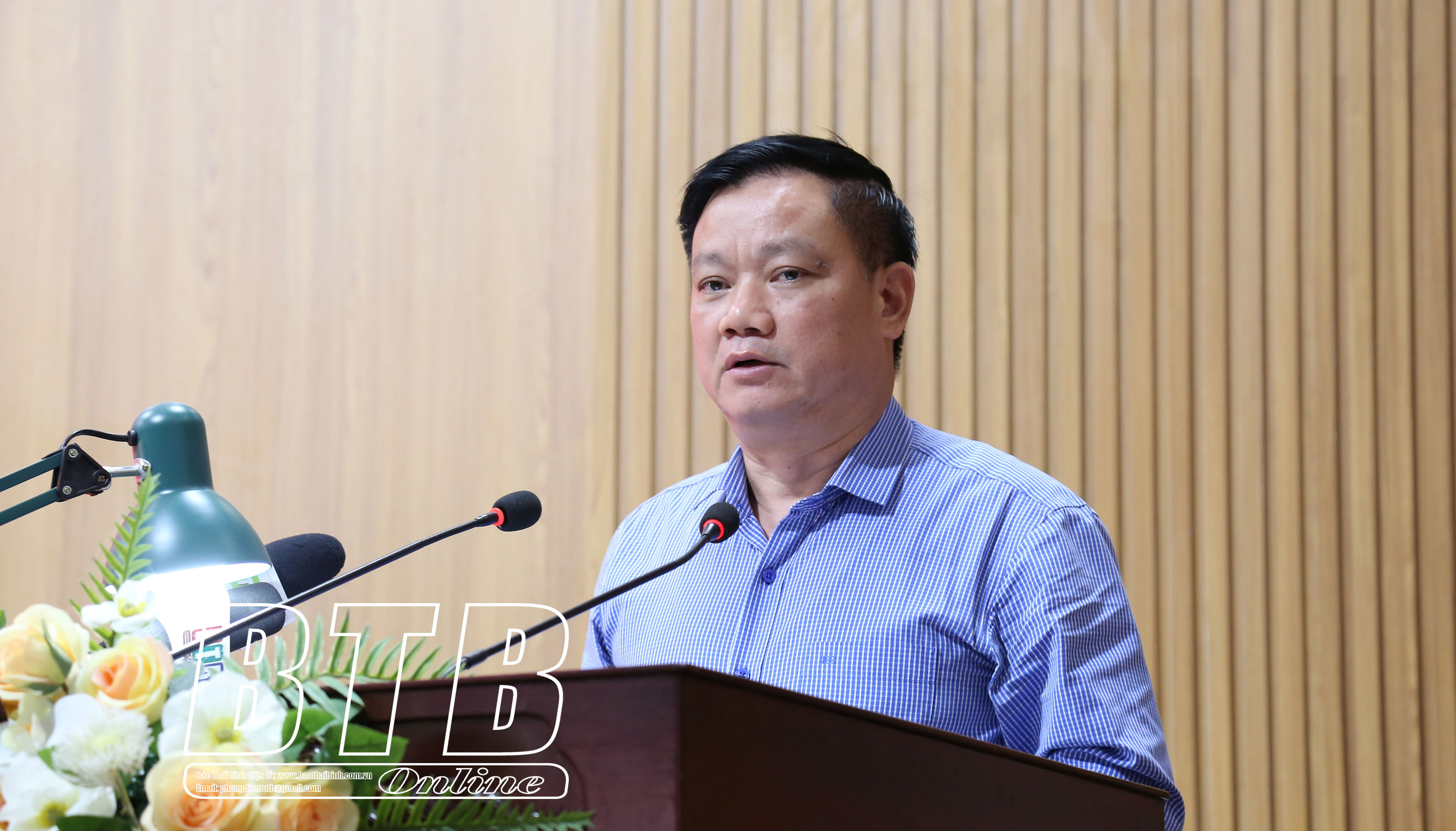 Đồng chí Nguyễn Khắc Thận, Phó Bí thư Tỉnh ủy, Chủ tịch UBND tỉnh phát biểu tại hội nghị.