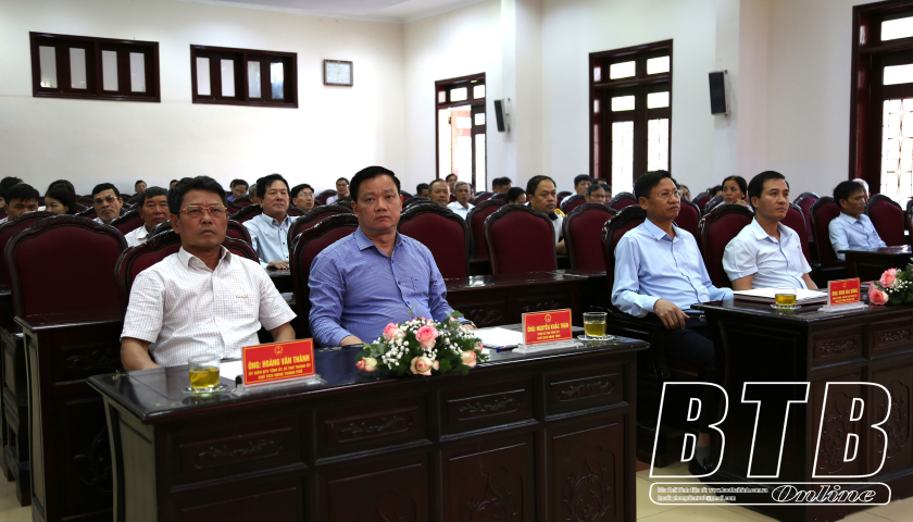 Các đồng chí: Nguyễn Khắc Thận, Phó Bí thư Tỉnh ủy, Chủ tịch UBND tỉnh; Hoàng Văn Thành, Ủy viên Ban Thường vụ Tỉnh ủy, Bí thư Thành ủy, Chủ tịch HĐND thành phố và các đại biểu dự hội nghị.