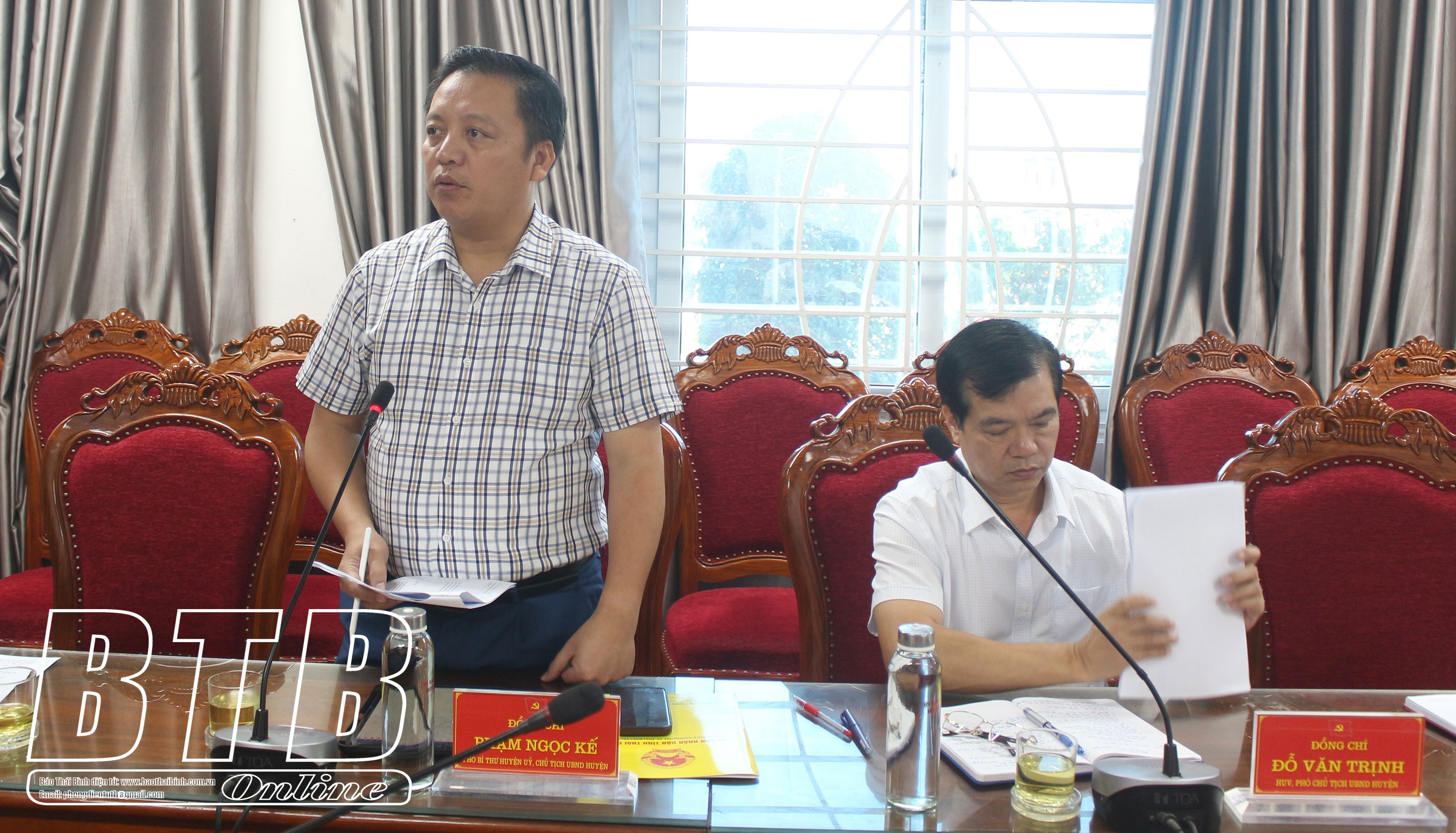 Lãnh đạo huyện Tiền Hải đã trao đổi giải trình về việc thực hiện kết luận, kiến nghị của KTNN; tồn tại, hạn chế, khó khăn, vướng mắc và nguyên nhân; đồng thời, đề xuất, kiến nghị một số giải pháp để huyện Tiền Hải tổ chức, thực hiện tốt hơn nữa việc thực hiện kết luận, kiến nghị của KTNN trong thời gian tới.