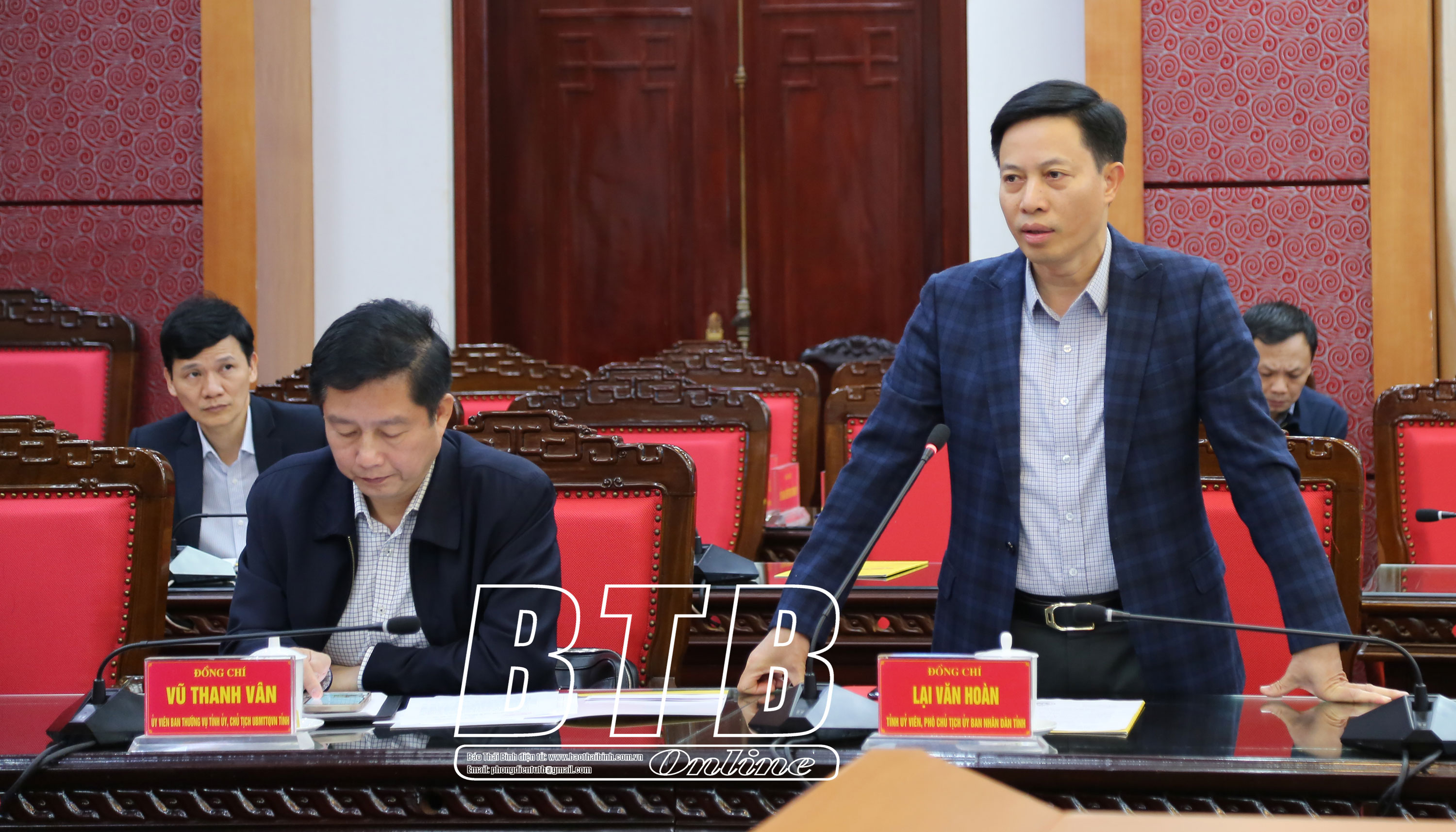 Đồng chí Lại Văn Hoàn, Tỉnh ủy viên, Phó Chủ tịch UBND tỉnh phát biểu tại hội nghị.