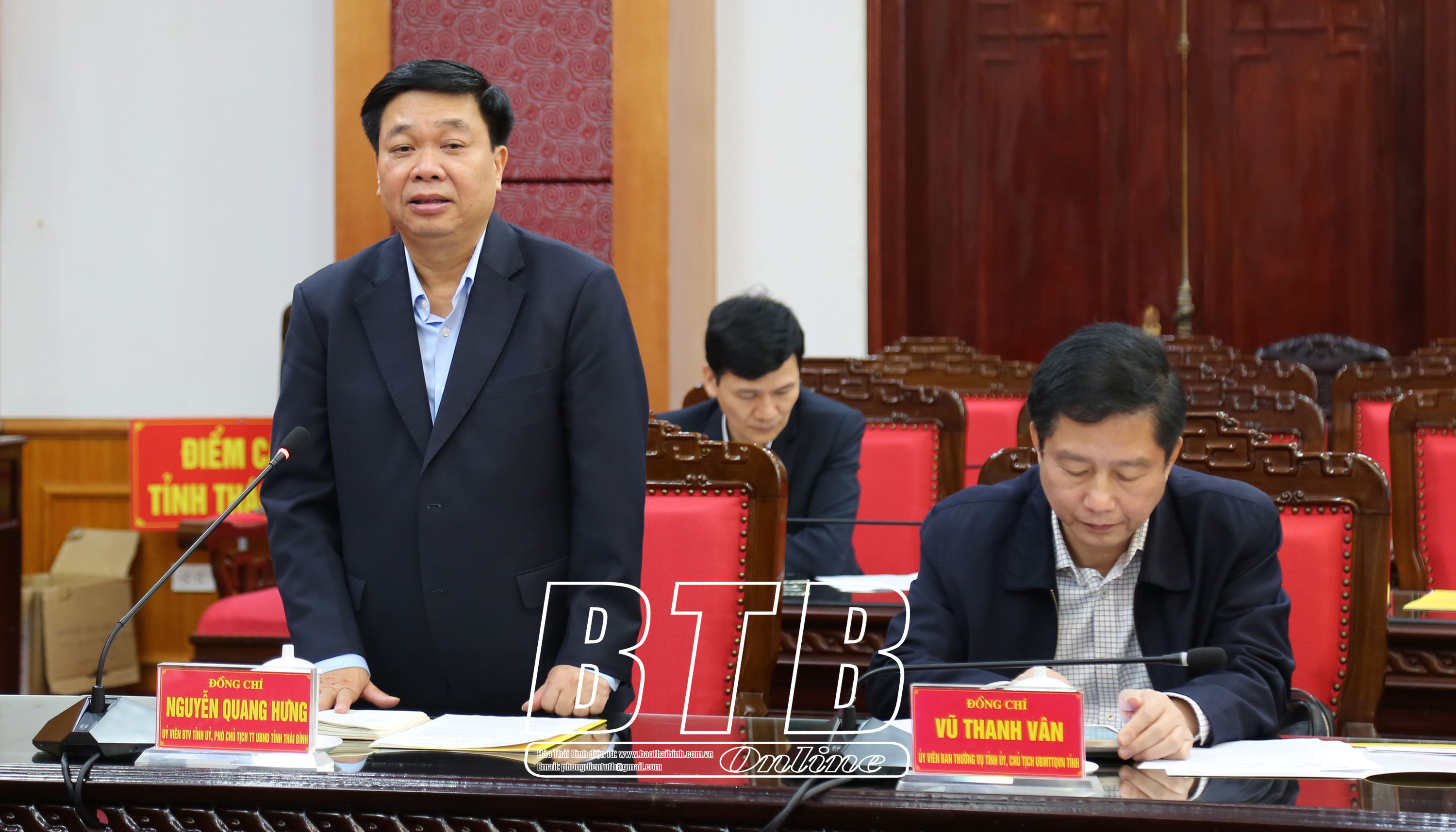 Đồng chí Nguyễn Quang Hưng, Ủy viên Ban Thường vụ Tỉnh ủy, Phó Chủ tịch thường trực UBND tỉnh phát biểu tại hội nghị.