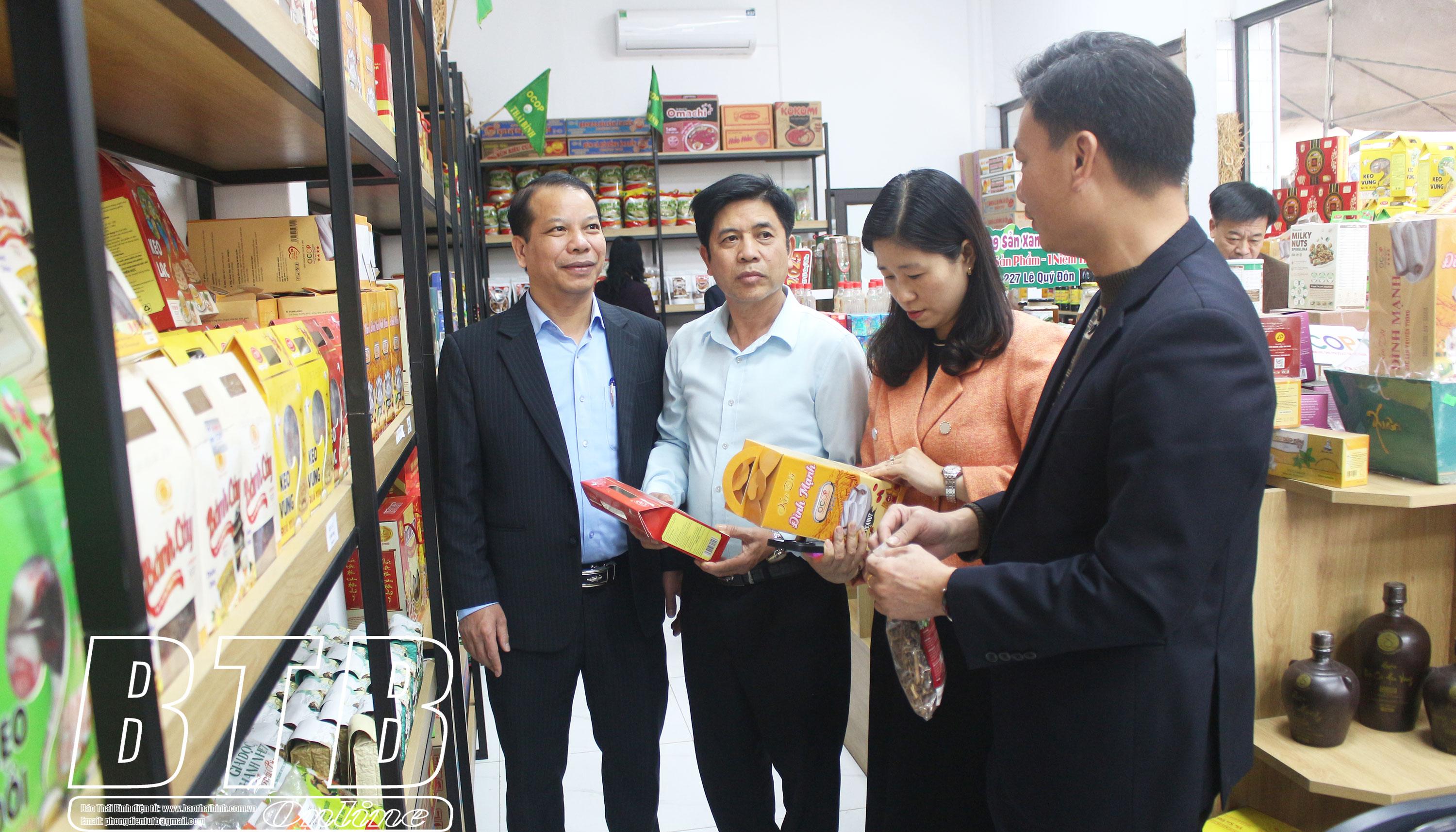 Đoàn đã trực tiếp giám sát tại cửa hàng bán lẻ thuộc hệ thống WinMart+ (tổ 7, phường Trần Hưng Đạo, thành phố Thái Bình) và cửa hàng liên kết giới thiệu, tiêu thụ sản phẩm OCOP và đặc sản vùng miền của Công ty TNHH Một thành viên Nông sản xanh (phường Bồ Xuyên, thành phố Thái Bình) với các nội dung như: việc chuẩn bị nguồn hàng dự trữ để phục vụ tết; niêm yết giá bán, trưng bày sản phẩm; chất lượng, nhãn mác, nguồn gốc xuất xứ hàng hóa; công tác bảo đảm an toàn điện; an toàn vệ sinh thực phẩm...