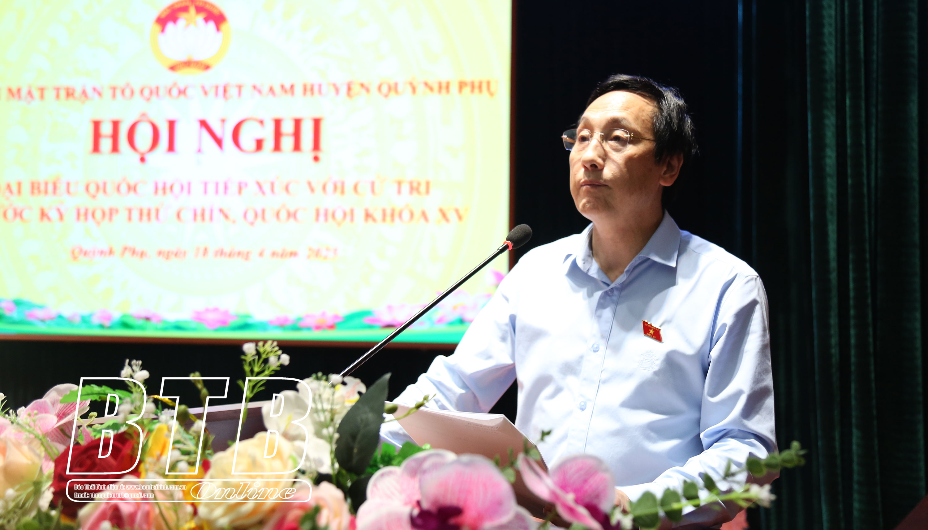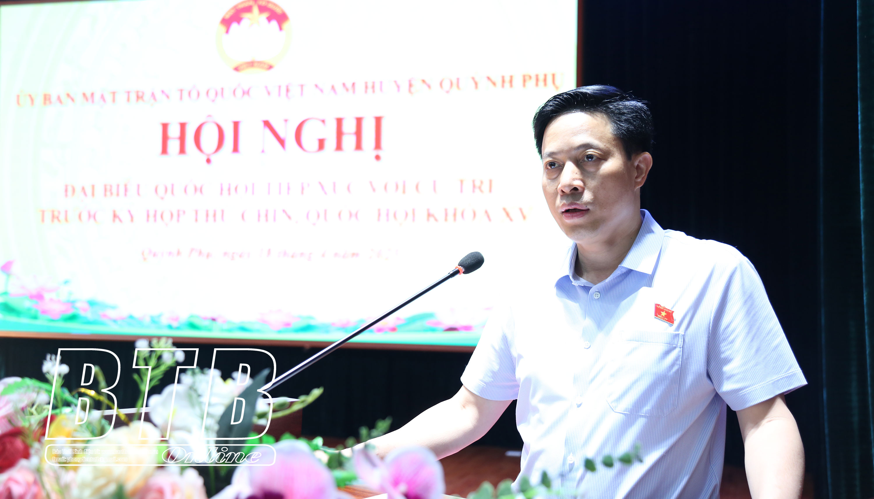 Đồng chí Lại Văn Hoàn, Tỉnh ủy viên, Phó Chủ tịch UBND tỉnh phát biểu tại hội nghị tiếp xúc cử tri huyện Quỳnh Phụ.