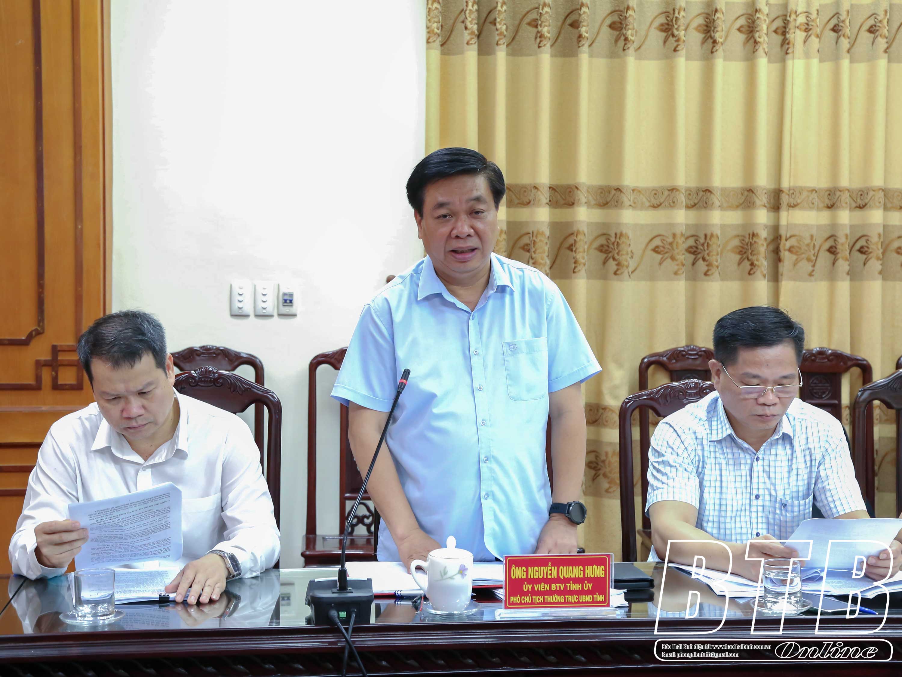 Đồng chí Nguyễn Quang Hưng, Ủy viên Ban Thường vụ Tỉnh ủy, Phó Chủ tịch thường trực UBND tỉnh phát biểu tại hội nghị.