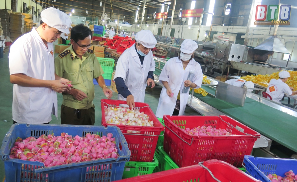 Đội Quản lý thị trường huyện Vũ Thư phối hợp với các đơn vị liên quan kiểm tra công tác bảo đảm an toàn thực phẩm tại cơ sở sản xuất bánh kẹo trên địa bàn. Ảnh: Thu Thủy