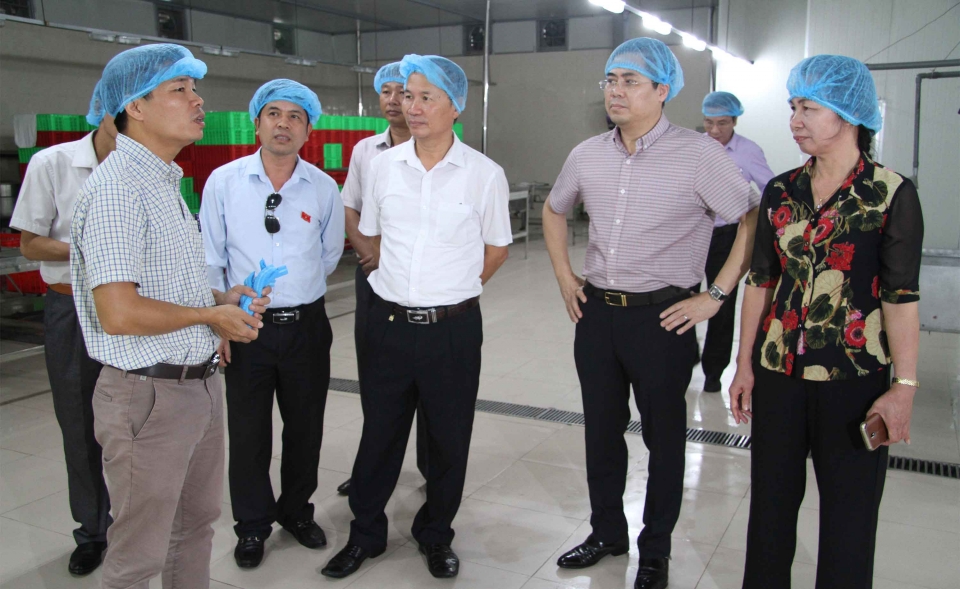Các đồng chí lãnh đạo HĐND, UBND tỉnh thăm và kiểm tra tình hình sản xuất tại Công ty CP Chế biến nông sản NW Gia Bảo, cụm công nghiệp Quỳnh Giao, Quỳnh Phụ