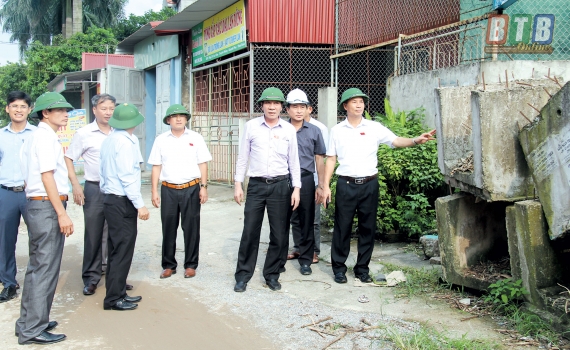 Lãnh đạo HĐND tỉnh khảo sát thực địa thi công đường ĐH.72 chạy qua địa phận huyện Quỳnh Phụ.
