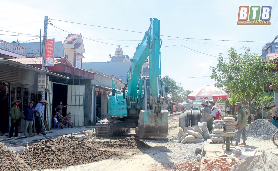 Thi công đường giao thông theo tiêu chí nông thôn mới tại xã Đông Động (Đông Hưng).
