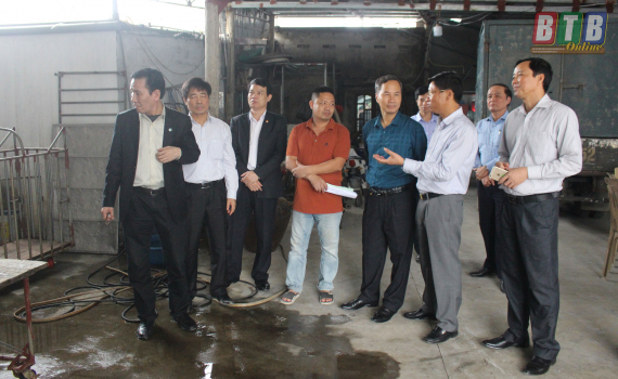 Đoàn giám sát của Thường trực HĐND tỉnh giám sát thực tế tại cơ sở giết mổ lợn trên địa bàn xã Vũ Lạc (thành phố Thái Bình).