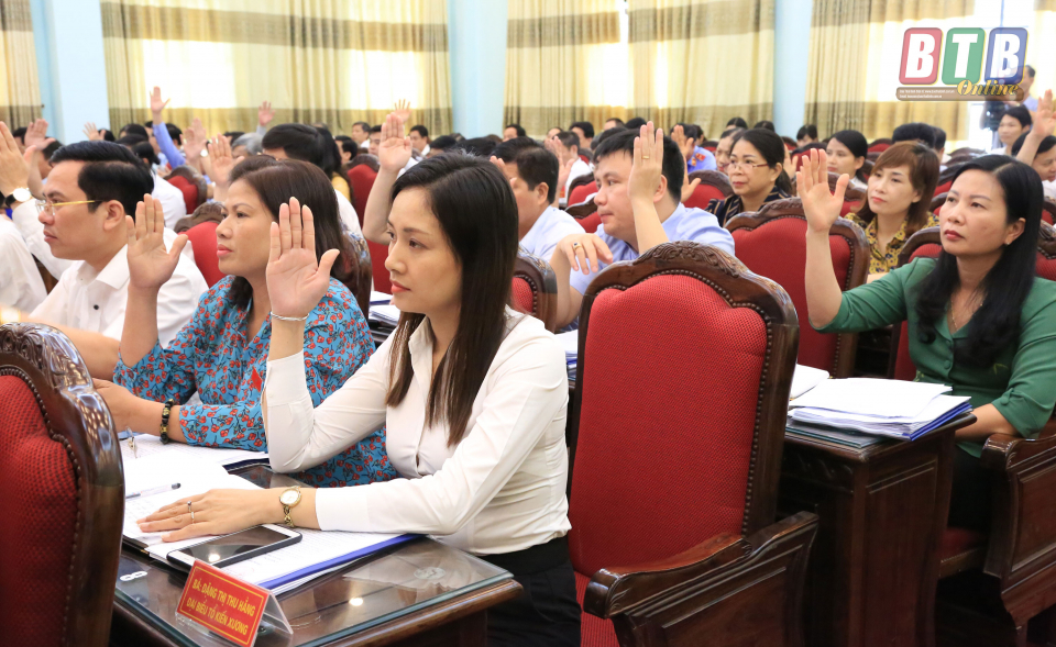 Các đại biểu biểu quyết các nghị quyết tại kỳ họp. Ảnh: Thành Tâm