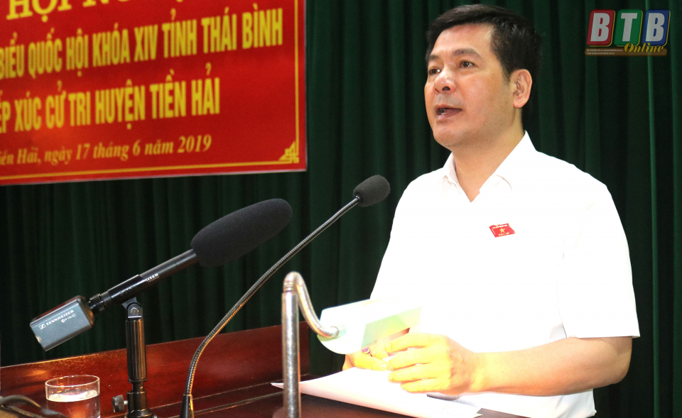 Đại biểu cử tri huyện Tiền Hải phát biểu tại buổi tiếp xúc cử tri. Ảnh: Tất Đạt