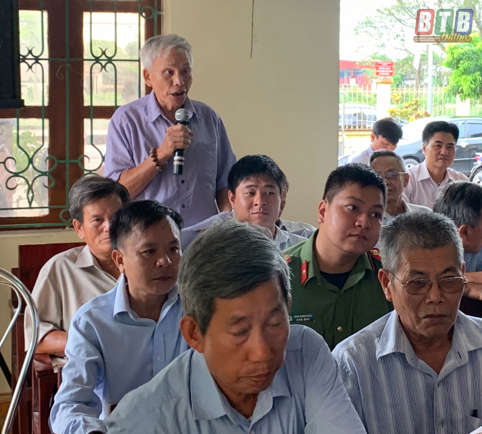 Cử tri huyện Vũ Thư phát biểu tại buổi tiếp xúc. Ảnh: Nguyễn Tùng
