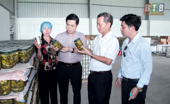 Nghị quyết của HĐND tỉnh đã tạo điều kiện cho các doanh nghiệp phát triển, nhất là doanh nghiệp chế biến nông sản.Trong ảnh: Các đồng chí lãnh đạo HĐND tỉnh, UBND tỉnh kiểm tra sản xuất tại Công ty Cổ phần Chế biến nông sản NW Gia Bảo (cụm công nghiệp Quỳnh Giao, huyện Quỳnh Phụ).