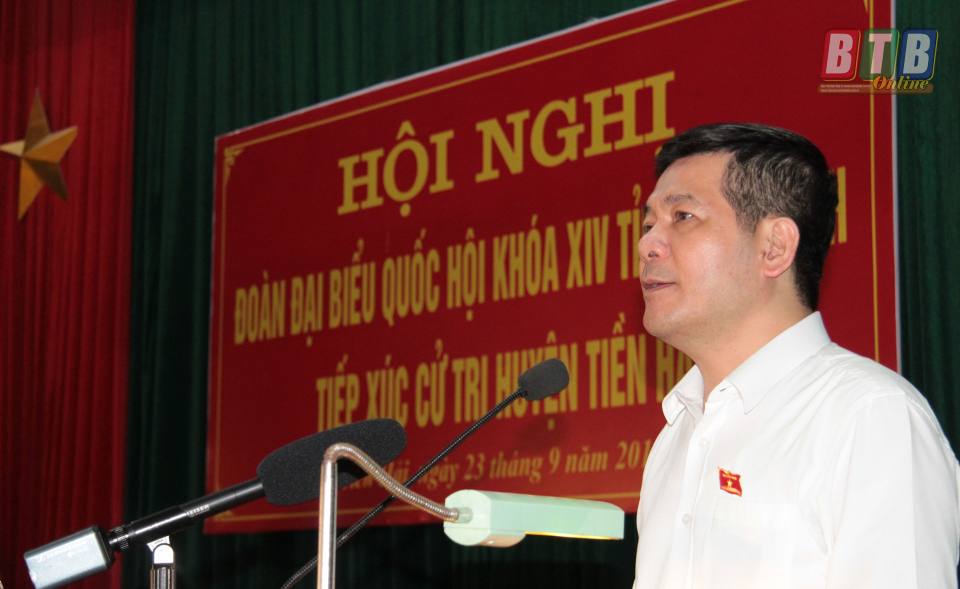 Đại diện đại biểu Quốc hội tỉnh cũng thông tin với đại biểu cử tri một số công trình, dự án trọng điểm đang được triển khai thực hiện nhằm đẩy mạnh thu hút đầu tư, phát triển kinh tế - xã hội của tỉnh như: Tuyến đường bộ ven biển, Khu kinh tế Thái Bình, xây dựng cầu sông Hóa, cải tạo, nâng cấp quốc lộ 37 đoạn qua tỉnh Thái Bình và cầu sông Hóa nối Thái Bình với Hải Phòng, khu công nghiệp chuyên nông nghiệp tại huyện Quỳnh Phụ… Các đại biểu Quốc hội tỉnh mong đại biểu cử tri nhất trí cao và ủng hộ để các công trình, dự án trọng điểm được triển khai thuận lợi, bảo đảm tiến độ, sớm đưa vào hoạt động. Các đại biểu Quốc hội tỉnh đề nghị các huyện làm tốt hơn nữa công tác giám sát, quản lý đất đai và công tác bảo vệ môi trường, nhất là tại các khu, cụm công nghiệp, làng nghề; các địa phương cần sớm quy hoạch địa điểm để thu hút nhà đầu tư triển khai xây dựng khu xử lý rác thải sinh hoạt tập trung…