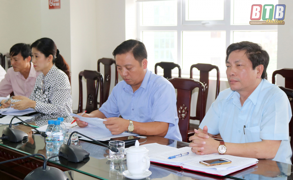 Các thành viên của Ban Kinh tế - Ngân sách Hội đồng nhân dân tỉnh giám sát tại Sở Công Thương.