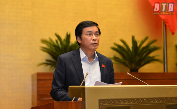 Đồng chí Nguyễn Hạnh Phúc, Tổng Thư ký Quốc hội, đại biểu Quốc hội tỉnh Thái Bình trình bày báo cáo tiếp thu, giải trình dự thảo Luật sửa đổi, bổ sung một số điều của Luật Cán bộ, công chức và Luật Viên chức.