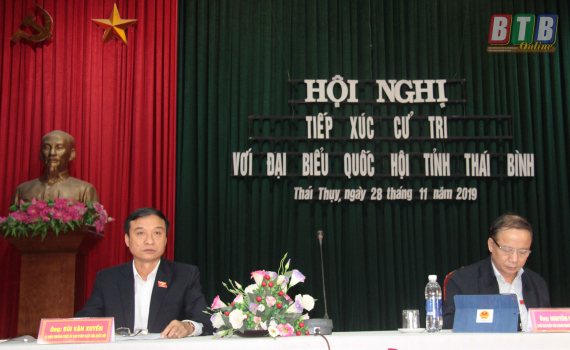 Tại hội nghị, thay mặt Đoàn đại biểu Quốc hội tỉnh, đại biểu Bùi Văn Xuyền đã giải đáp các ý kiến, kiến nghị của cử tri thuộc thẩm quyền; đồng thời tiếp thu các ý kiến, kiến nghị, tổng hợp gửi các ban, ngành liên quan xem xét, giải quyết và trình Quốc hội trong kỳ họp tới.