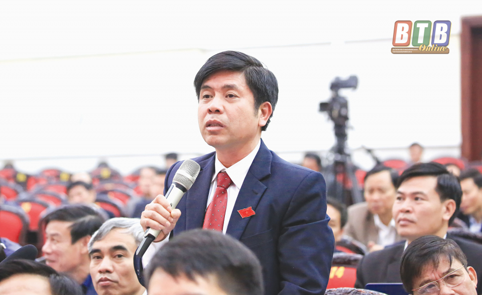 Đại biểu Lê Hồng Sơn (tổ Hưng Hà) chất vấn tại kỳ họp thứ chín HĐND tỉnh khóa XVI.