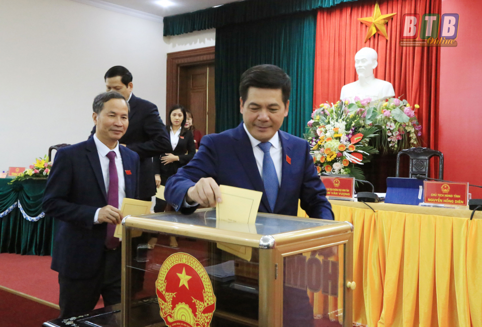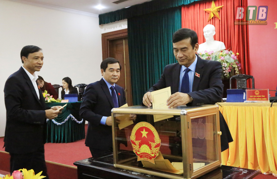 Đại biểu bỏ phiếu bầu bổ sung Ủy viên UBND tỉnh nhiệm kỳ 2016- 2021. Ảnh: Thành Tâm