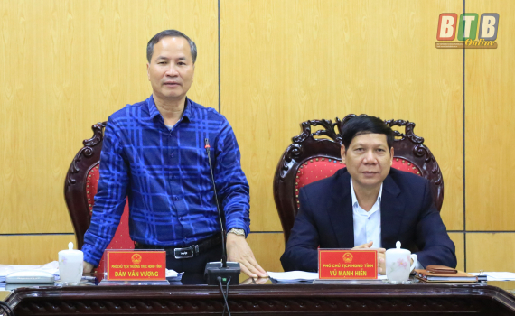 Các đồng chí: Đàm Văn Vượng, Ủy viên Ban Thường vụ Tỉnh ủy, Phó Chủ tịch thường trực HĐND tỉnh; Vũ Mạnh Hiền, Tỉnh ủy viên, Phó Chủ tịch HĐND tỉnh chủ trì cuộc họp.