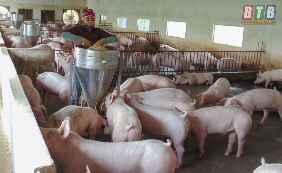 Nông dân xã An Ấp (Quỳnh Phụ) phát triển chăn nuôi lợn từ nguồn vốn tín dụng ngân hàng.