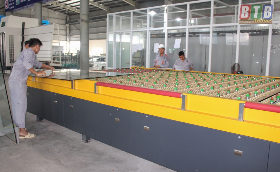Công nhân sản xuất kính tại Công ty TNHH Tiền Châu.