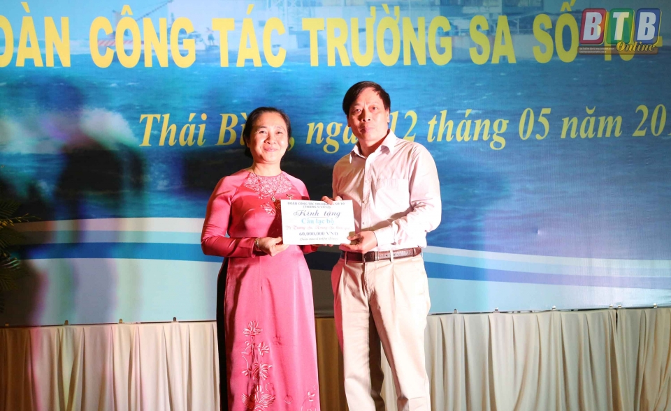 Tại buổi gặp mặt, đoàn công tác Trường Sa số 10 năm 2012 đã trao tặng 60 triệu đồng ủng hộ Câu lạc bộ “Vì Hoàng Sa - Trường Sa thân yêu”.
