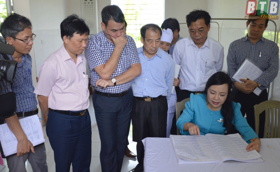 Trước đó, vào đầu giờ chiều, Bộ trưởng Bộ Y tế Nguyễn Thị Kim Tiến và đoàn công tác của Bộ Y tế đã đến kiểm tra, khảo sát công tác khám chữa bệnh tại Bệnh viện Đa khoa tỉnh Thái Bình.