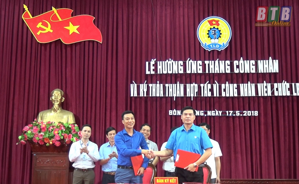 Tại lễ phát động, đại diện Công ty TNHH Du lịch và Thương mại Sao Việt, Trung tâm kinh doanh VNPT Vinaphone chi nhánh Đông Hưng, Xí nghiệp May Đông Hưng đã ký kết với LĐLĐ Đông Hưng chương trình phúc lợi cho đoàn viên, người lao động.