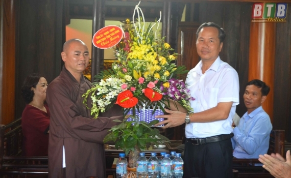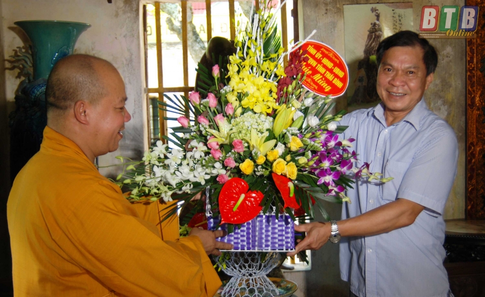 Đồng chí Đặng Thanh Giang, Ủy viên Ban Thường vụ Tỉnh uỷ, Chủ tịch Ủy ban MTTQ tỉnh; Đại tá Khiếu Quang Bình, Phó Chính ủy Bộ Chỉ huy Quân sự tỉnh, lãnh đạo huyện Thái Thụy thăm, tặng quà, chúc mừng Hòa thượng Thích Thanh Tụ, Ủy viên thường trực Ban Trị sự Giáo hội Phật giáo Việt Nam tỉnh, Trưởng ban Trị sự Giáo hội Phật giáo Việt Nam huyện Thái Thụy, trụ trì chùa Phúc Lâm, xã Thái Phúc; Đại đức Thích Thanh Ngọc, Phó trưởng Ban Trị sự Giáo hội Phật giáo Việt Nam huyện Thái Thụy, trụ trì chùa An Phú, xã Thụy Dũng; Đại đức Thích Thanh Lợi, Chánh thư ký Giáo hội Phật giáo Việt Nam huyện Thái Thụy, trụ trì chùa Phú Xuân, xã Thụy Trình.