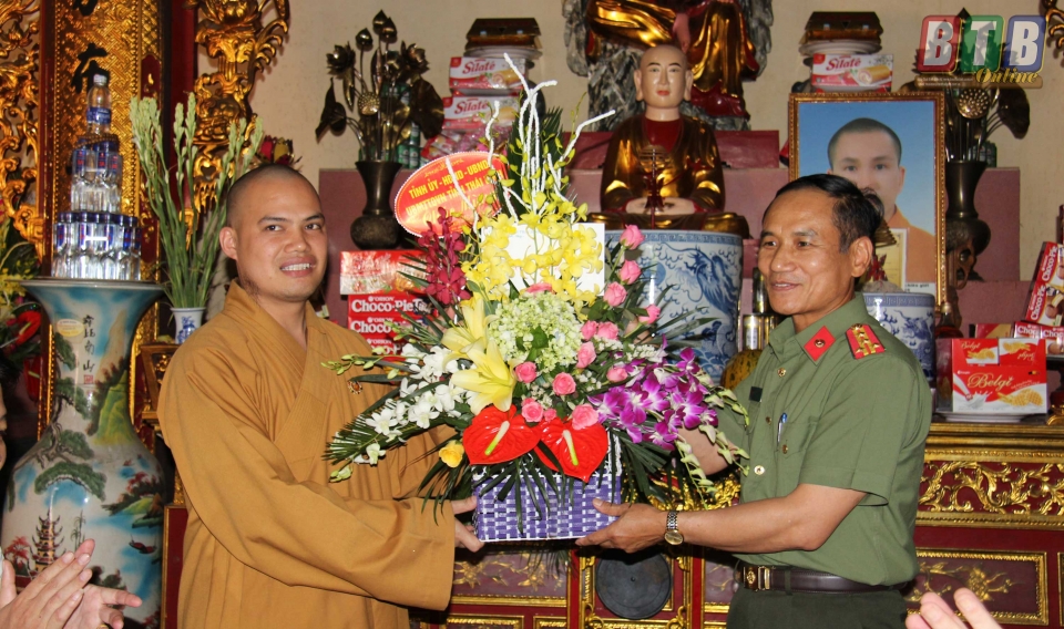 Đại tá Nguyễn Văn Minh, Ủy viên Ban Thường vụ Tỉnh ủy, Giám đốc Công an tỉnh cùng các đồng chí lãnh đạo huyện Đông Hưng đã đi thăm, tặng quà chúc mừng Đại đức Thích Thanh Diễn, Trưởng ban Trị sự Giáo hội Phật giáo Việt Nam huyện Đông Hưng, trụ trì chùa Quỳnh Hoa, xã Nguyên Xá; Đại đức Thích Giác Nguyên, Phó trưởng ban Trị sự Giáo hội Phật giáo Việt Nam huyện, trụ trì chùa Khánh La, xã Phú Châu; sư cô Thích Đàm Tuyên, Phó trưởng ban Trị sự Giáo hội Phật giáo Việt Nam huyện, trụ trì chùa Linh Ứng, xã Hoa Nam.