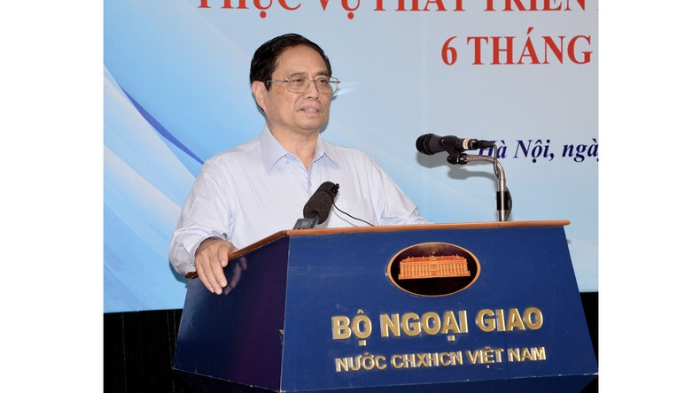 Thủ tướng chia sẻ với các bộ, ngành, cơ quan liên quan về những vất vả, khó khăn trong triển khai công tác đối ngoại và ngoại giao kinh tế thời gian qua. Vượt lên những khó khăn, các đồng chí đã bám sát địa bàn, kịp thời tham mưu cho Chính phủ, góp phần kiểm soát hiệu quả dịch bệnh trong nước, duy trì ổn định kinh tế vĩ mô và hỗ trợ, thúc đẩy phục hồi, phát triển kinh tế-xã hội.