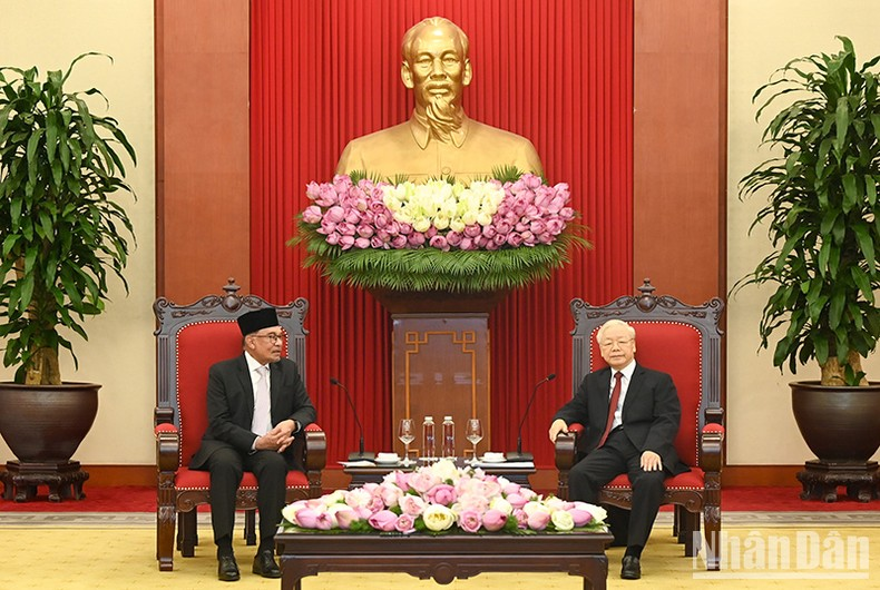 Thủ tướng Anwar Ibrahim nhấn mạnh sự vui mừng và coi trọng cuộc hội kiến với Tổng Bí thư Nguyễn Phú Trọng. Tổng Bí thư Nguyễn Phú Trọng bày tỏ tin tưởng rằng chuyến thăm của Thủ tướng Anwar Ibrahim là dấu mốc mới, góp phần thúc đẩy sự phát triển của quan hệ đối tác chiến lược giữa hai nước.