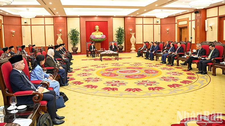 Tổng Bí thư trao đổi về những thành tựu to lớn, toàn diện mà Việt Nam phấn đấu đạt được, tạo dựng cơ đồ, tiềm lực, vị thế, uy tín quốc tế như ngày nay.